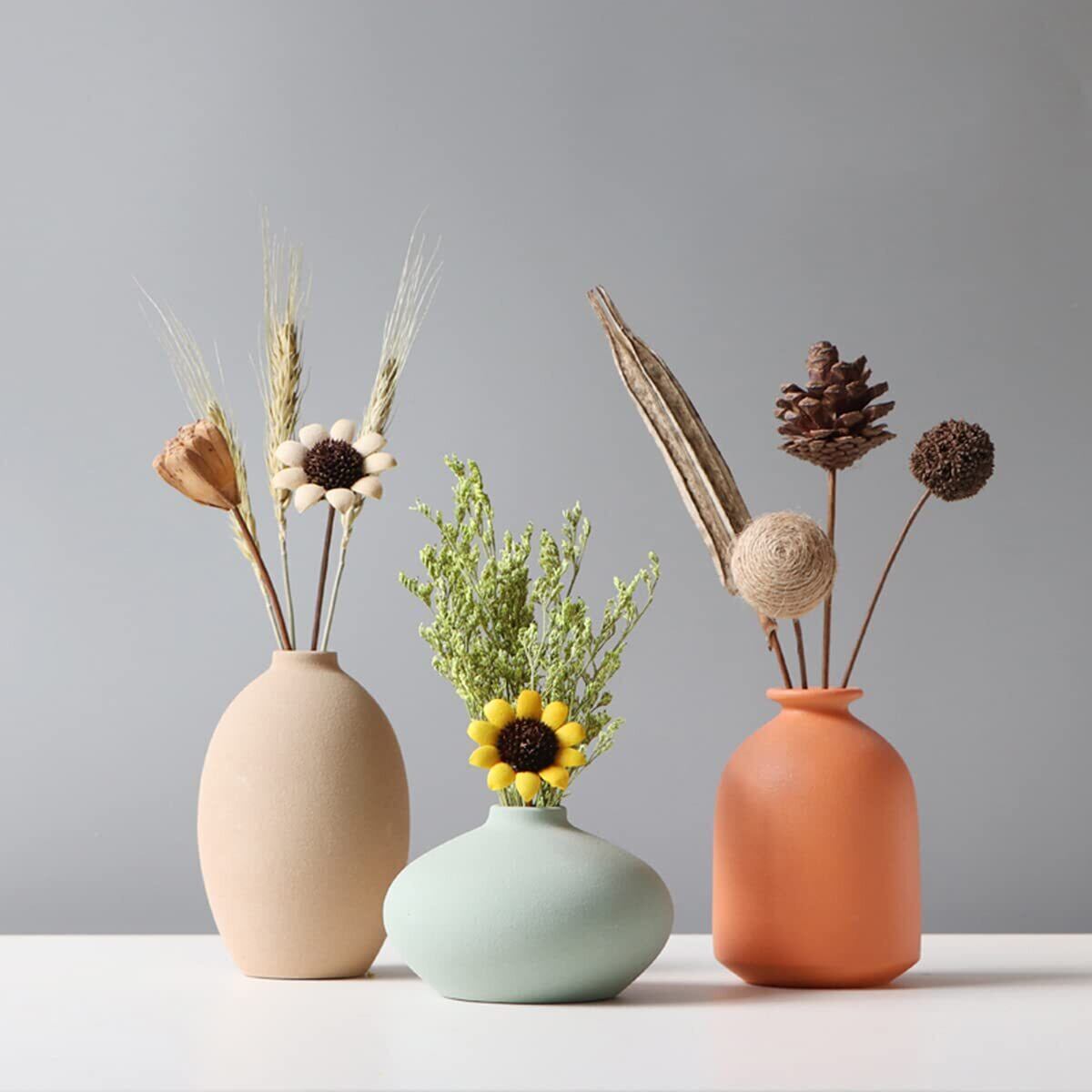 【在庫セール】AIVAR 花瓶 陶器 フラワーベース 花器 一輪挿し 北欧 おしゃれ 3つセット 和風花瓶 シンプル 小さい フラワーベース セット インテリア 造花 水栽培 花瓶 プレゼント ギフト (セット3:茶色+青+オレンジ) | nico3588