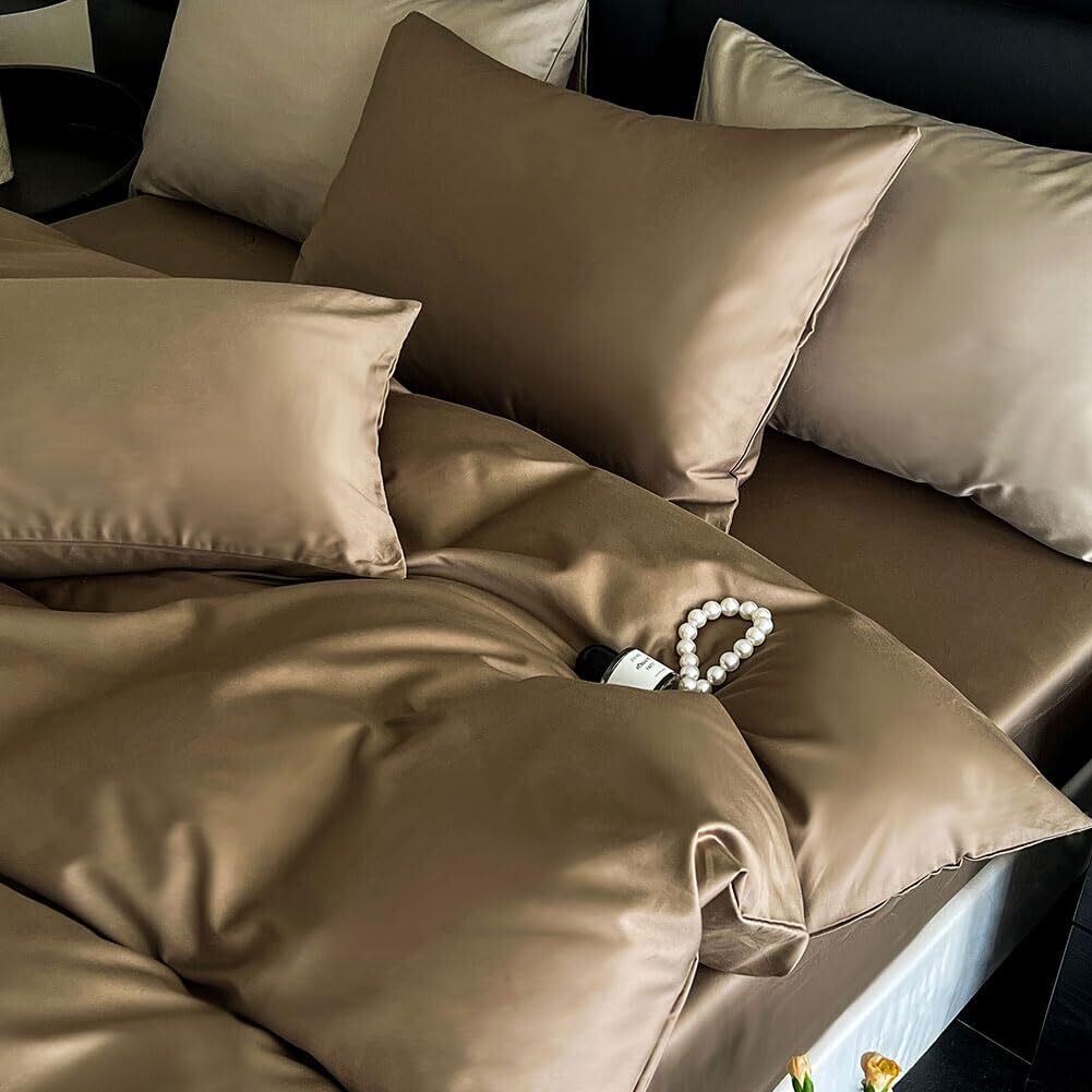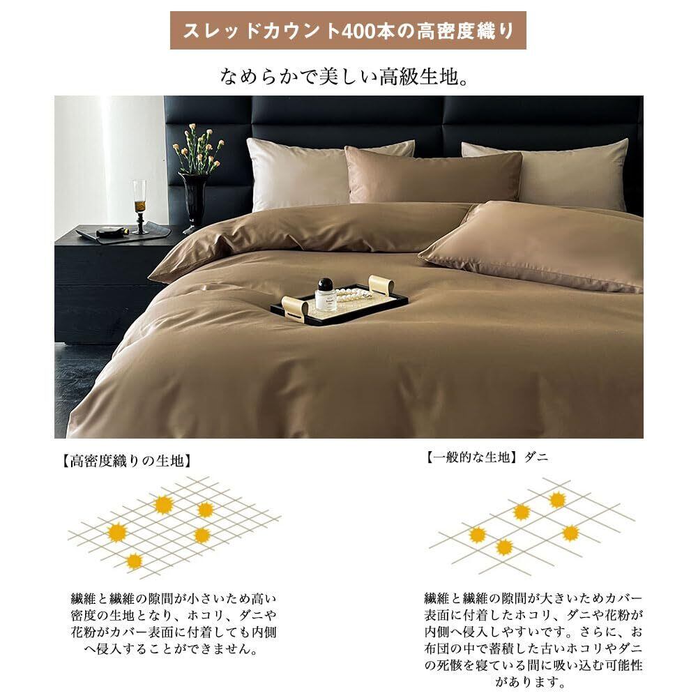 掛け布団カバー シングル 綿100% サテン織り 100番手双糸 超長綿 400本高密度生地 ホテル仕様 防ダニ 掛けふとんカバー ふとんカバー 布団カバー シルクのような肌触り 北欧 滑らか 柔らかい (150x210cm, ショコラブラウン)