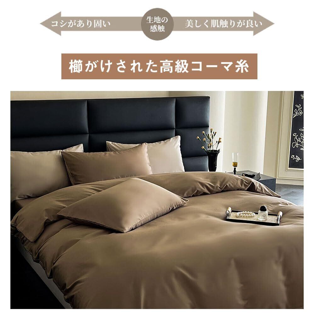 【新春セール】掛け布団カバー シングル 綿100% サテン織り 100番手双糸 超長綿 400本高密度生地 ホテル仕様 防ダニ 掛けふとんカバー ふとんカバー 布団カバー シルクのような肌触り 北欧 滑らか 柔らかい (150x210cm, ショコラブラウン) | nico3588