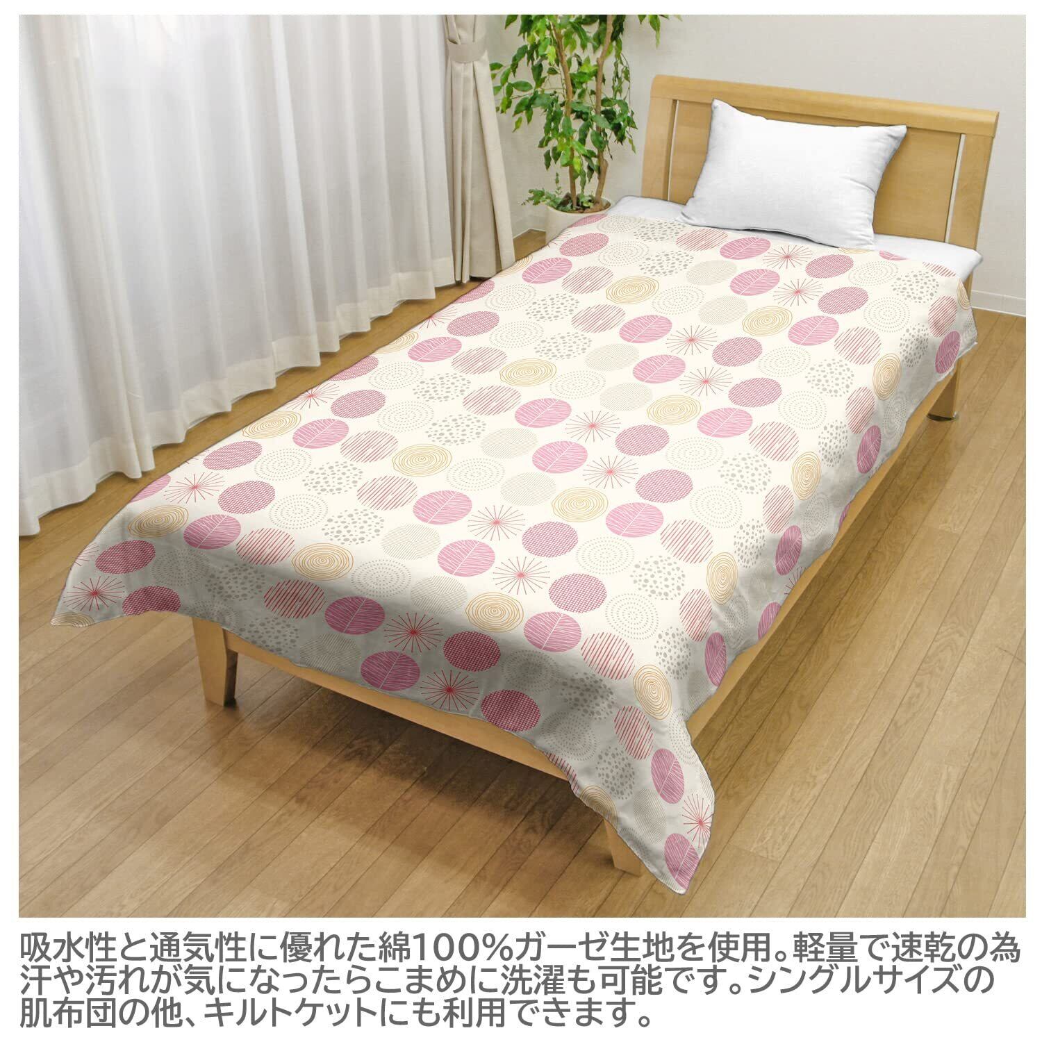 メリーナイト 肌布団カバー ガーゼ 「ナチュラルドット」 ピンク シングル 約140×190cm 綿100% ふんわりやさしい肌触り 吸水性 通気性 軽量 洗える 夏用寝具 CT14014-16
