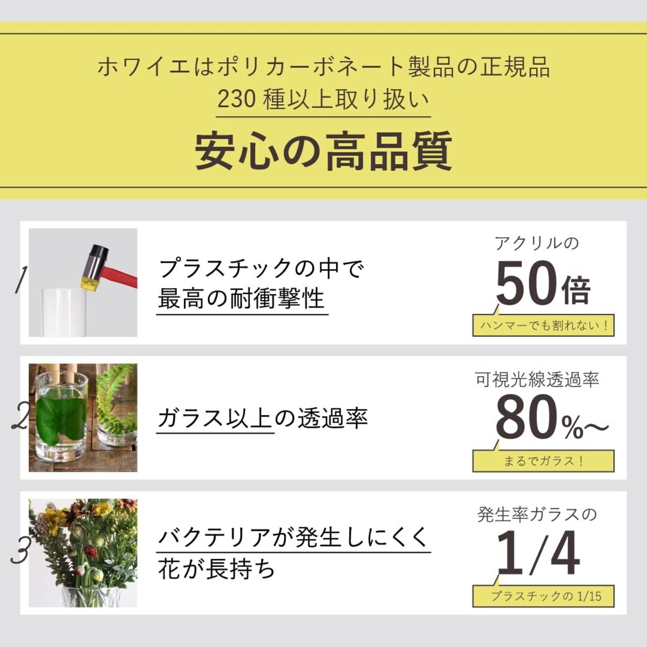 バイエル社(ドイツ)の高品質なポリカーボネートを使用