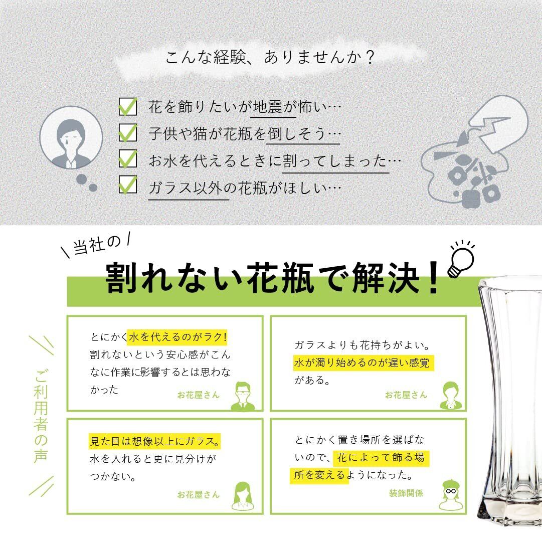 FOYER 割れない 花瓶 フラワーベース ポリカーボネート おしゃれ 高さ 18 cm 幅 7 cm 大きい 2300068