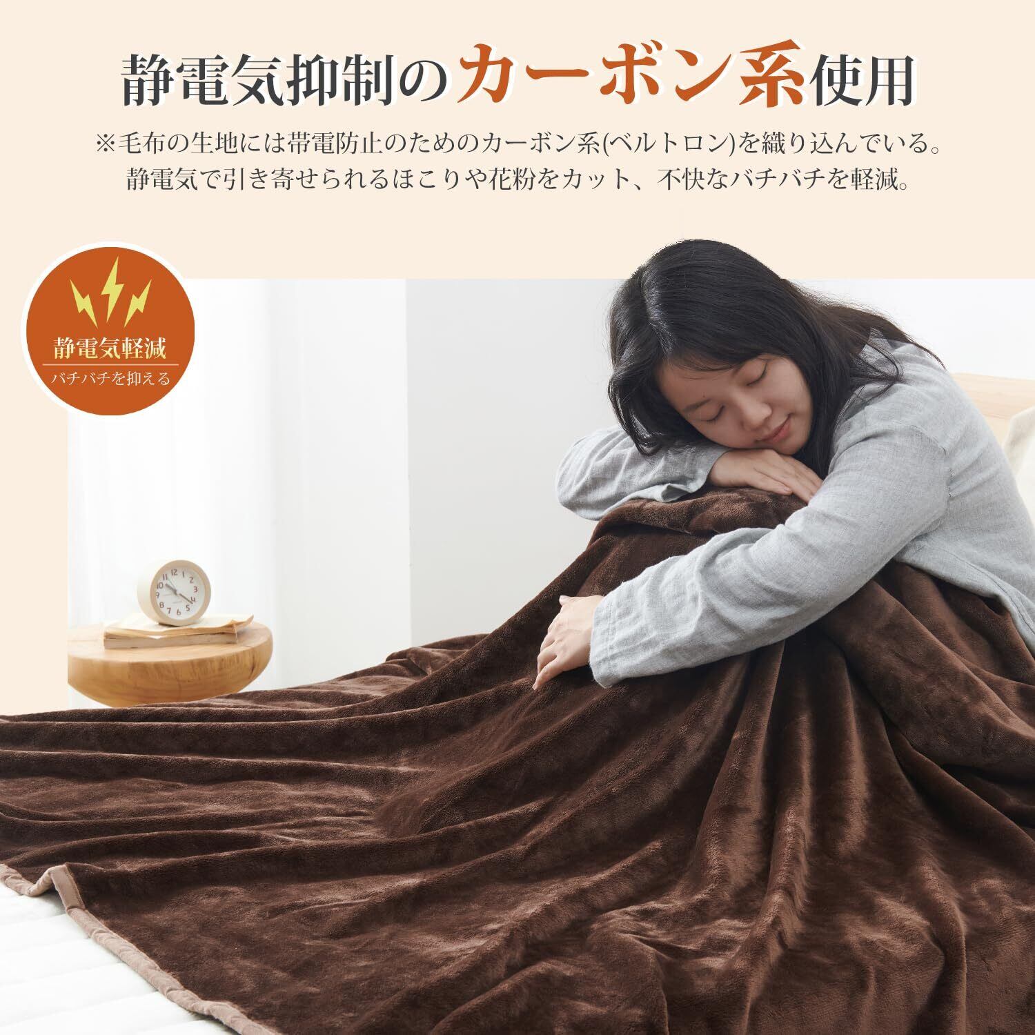 <ふんわり、なめらか>:毛布は高密度フランネルマイクロファイバー生地を採用しています。キメ細やかな繊維が、ふんわりで柔らかな肌触りを与え、体を優しく包み込みます。