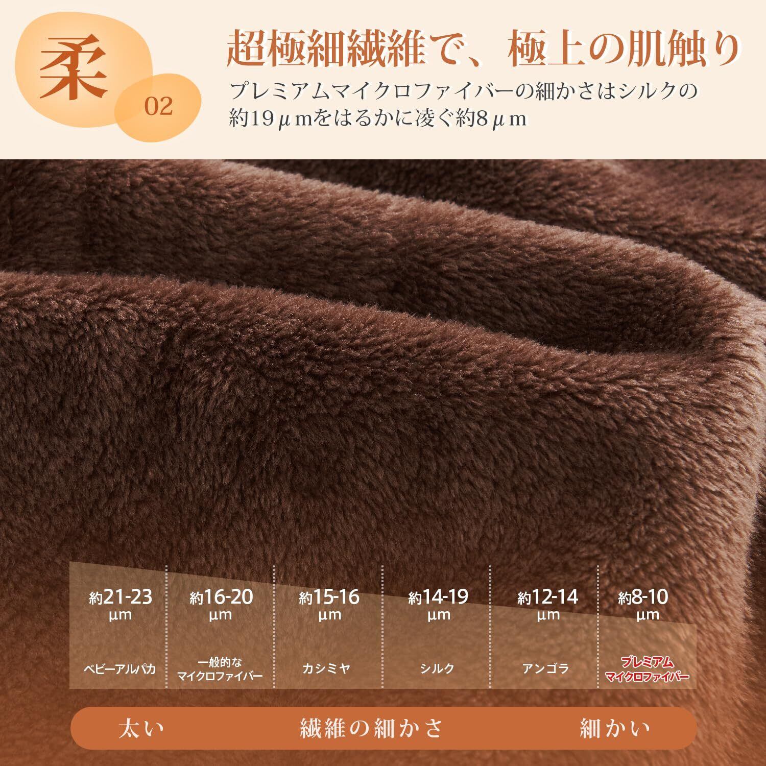 ・従来のマイクロファイバー毛布に比べて、極細繊維を使用しているため、肌触りは格別です。撫でた時の毛並みは美しい。その違いを肌で実感頂けます。