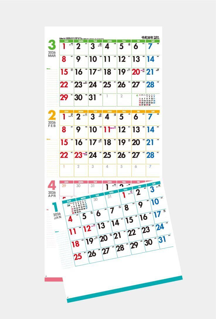 ■商品名:【特価セール】壁掛けカレンダー 2026年版 Like it Color 3ヶ月カレンダー