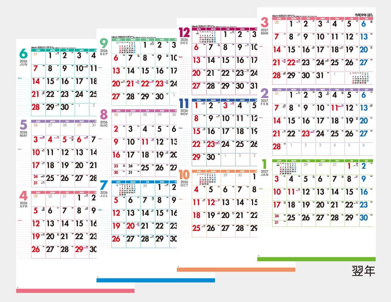 パステル調のカラーラインを毎月色を変え各月が見やすくなっています!
