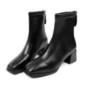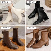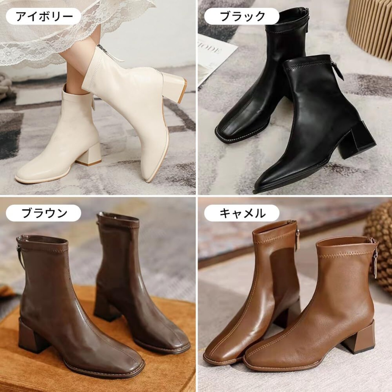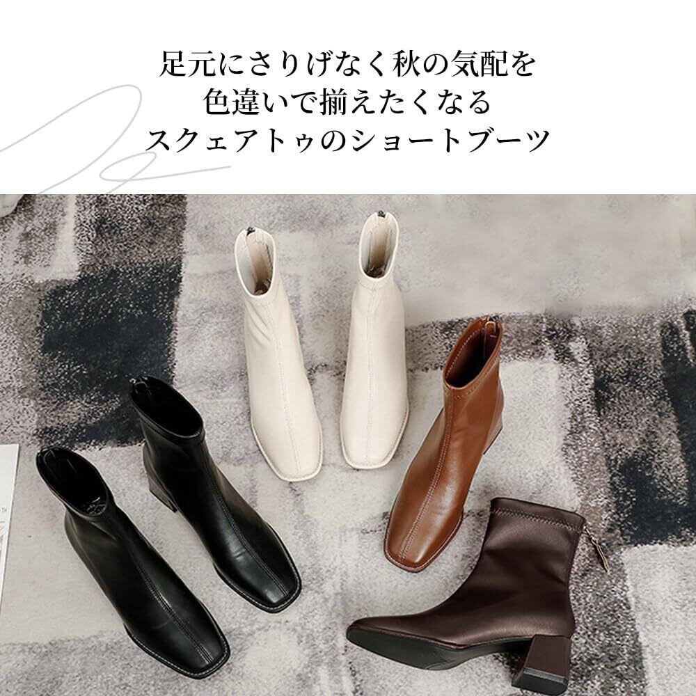 [Minax] ブーツ ショート レディース 太ヒール 歩きやすい 撥水 女性 秋 冬用 軽量 美脚 スクエアトゥ ステッチデザイン ストレッチ 柔らかい バックジップ 黒 白 茶 ブラウン 22.5cm-25.0cm