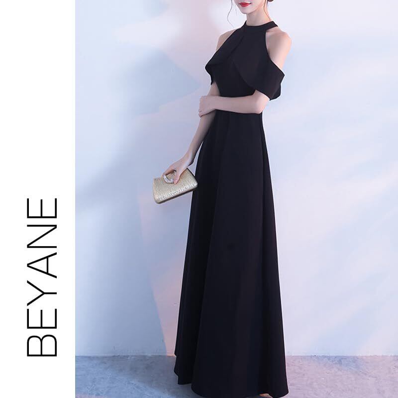 [BEYANE] ゆったり Aライン ロングドレス ハイウエスト キャバドレス フレアスカート 上品 清楚 ホルターネック 結婚式
