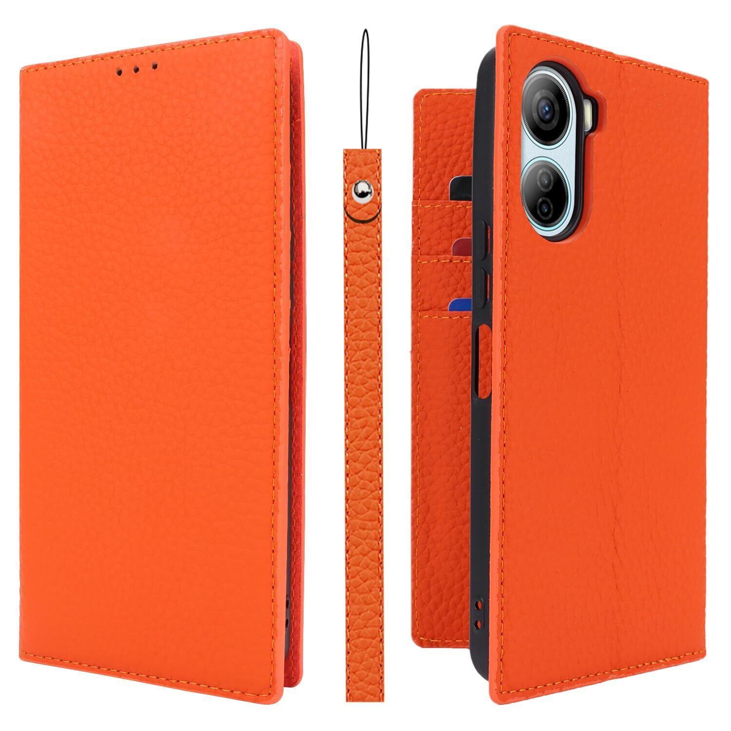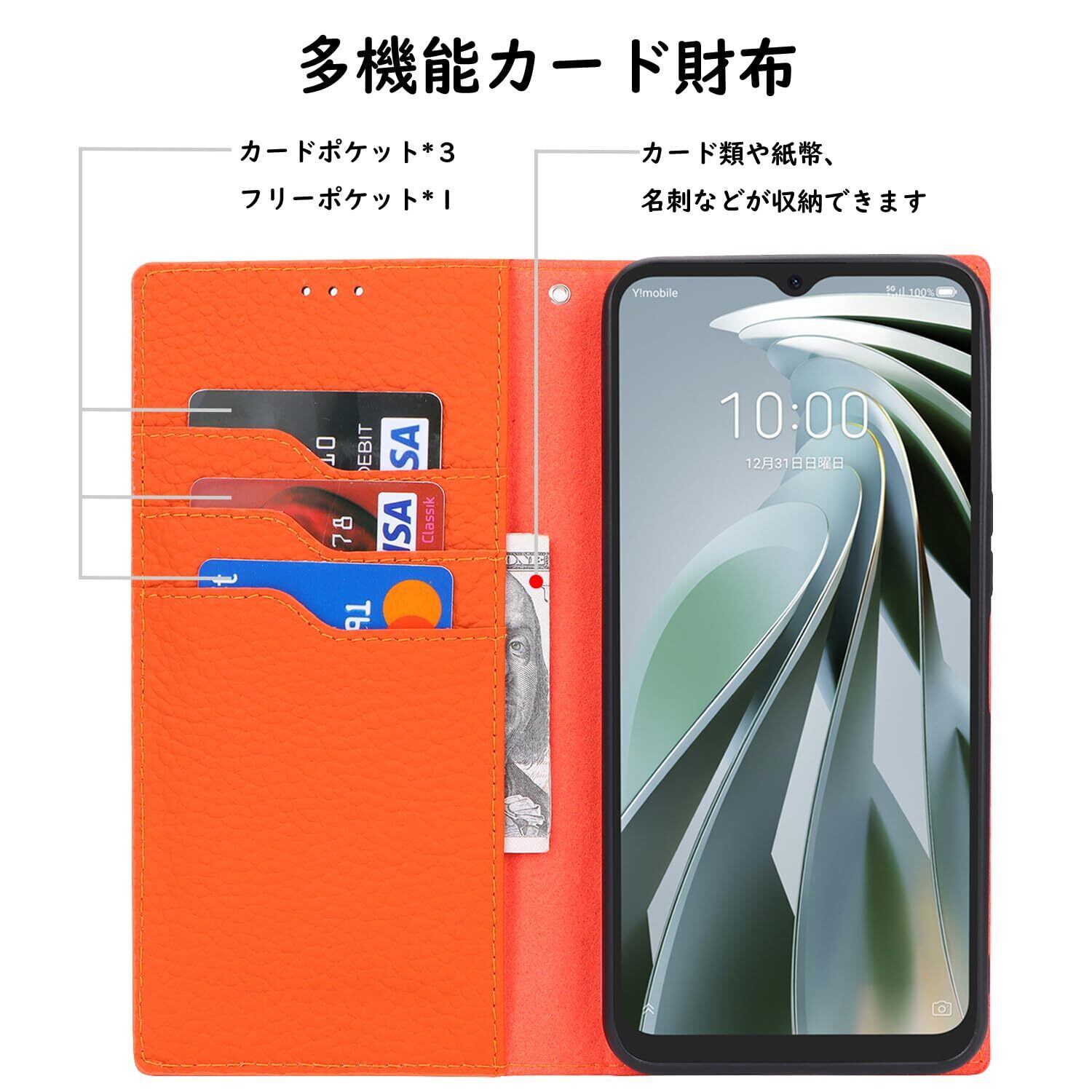 Havaya ZTE Libero 5G IV ケース A302ZT ケース 手帳型 本革 ストラップ docomo libero5g4 スマホケース au 耐衝撃 リベロ5g 4世代 カバー SoftBank カード収納 スタンド機能 レザー -オレンジ