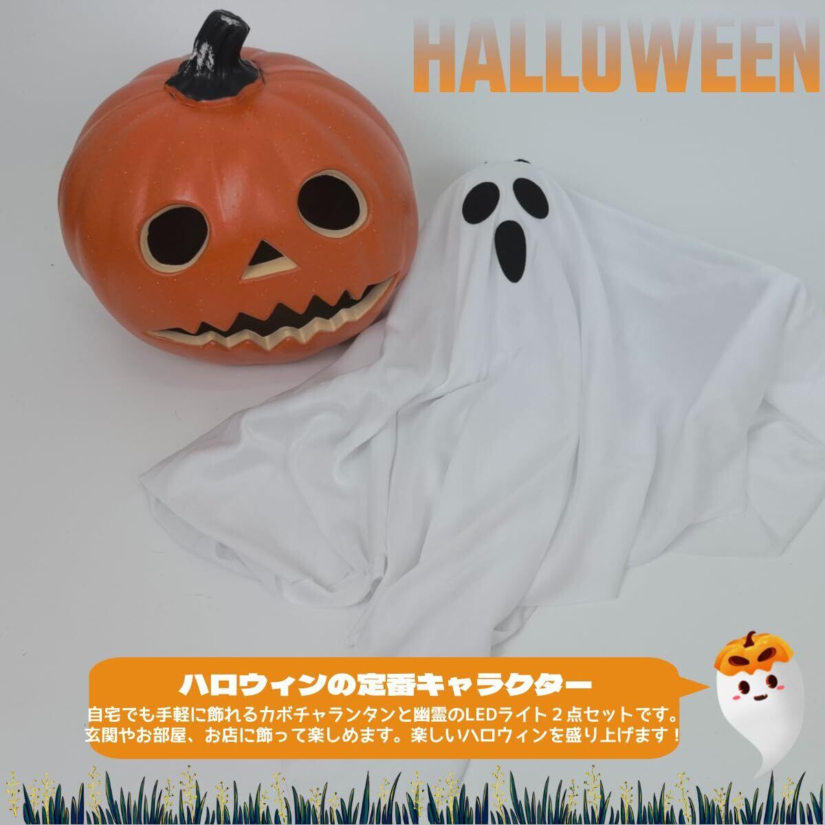 Little Bean® ハロウィン 飾り LED ライト 2点セット カボチャランタン 幽霊 吊り下げ 昼間もしっかり目立つ 装飾 飾り付け ライト 電池式 雰囲気満点 ハロウィングッズ (B型)