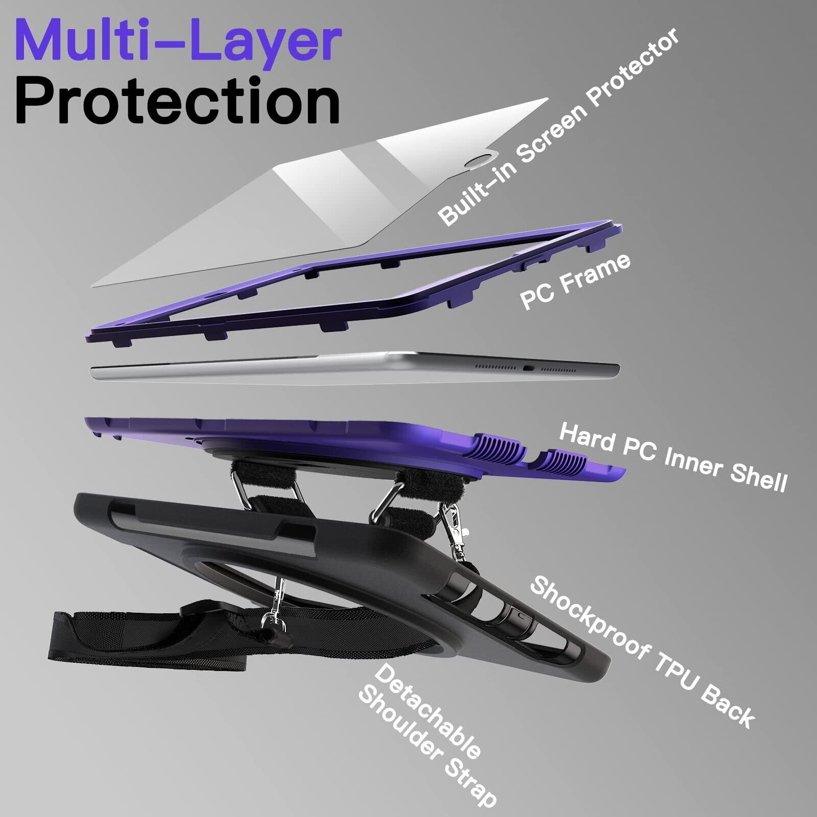JETech iPad 9.7インチ ケース (第6/5世代、2018/2017モデル) 液晶保護フィルム付き 保護耐衝撃頑丈なタブレットカバー 360°回転ハンドストラップスタンド (パープル)