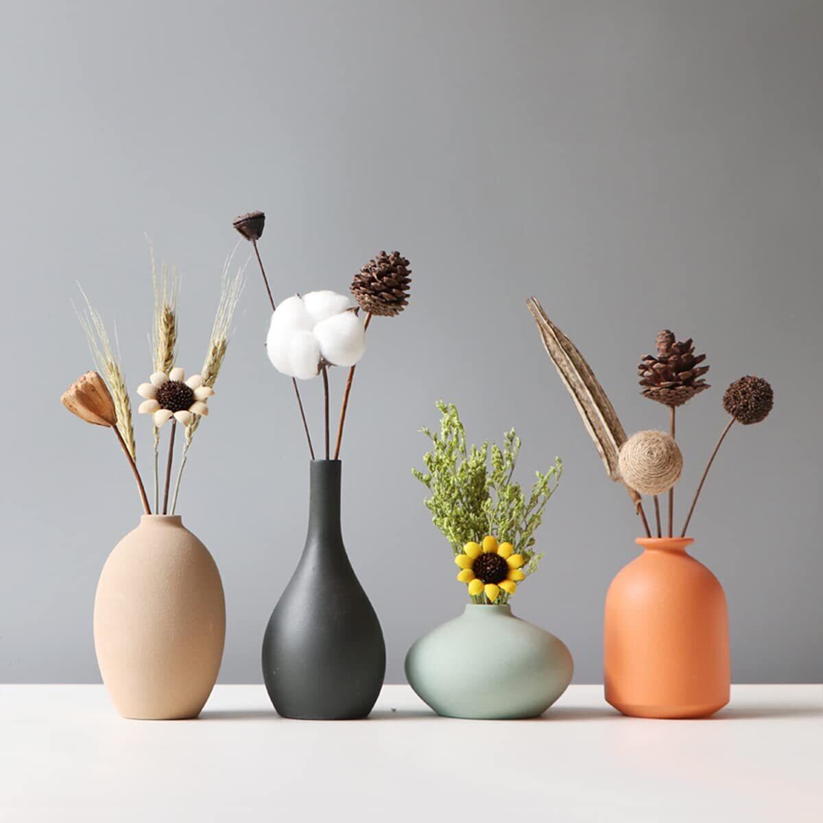 4、多くの用途:この装飾花瓶セットは、シンプルな装飾として、またはプレゼントとして、ドライフラワー、造花、緑の植物、生花と一緒に使用して、創造性を解き放つさまざまな方法で使用できます、どこに置いても美しい風景になります。
