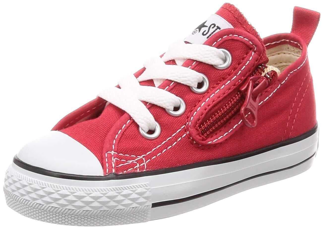 チャイルド オールスター 継続品のリニューアルスペックモデル。持ち手の大きいファスナーに、つまみやすい広めの踵テープで脱ぎ履きしやすい仕様。しなやかなラバーに、踵部分にはボードを内蔵し、足の曲がる位置でしっかり屈曲するソール設計。カップインソールにはサイズ変更の目安が分かるフィッティングチェッカー付き。待望のオプティカルホワイトを追加