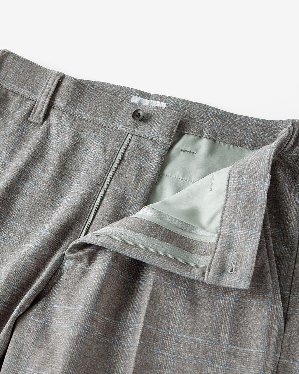 一見ウールのパンツのようで、じつはスポーツウェアに使われるジャージー素材のゴルフパンツ。名門ゴルフ場でも通用するクラシックなチェック柄をデジタルプリントで施しました。スイングを左右する下半身の動きも縦横に伸縮するジャージーパンツゆえ、膝の曲げ伸ばしも楽々。ストレッチ芯を採用したウェストがサイドゴムでフィットするので、腰の回転にしっかり追随してくれます。