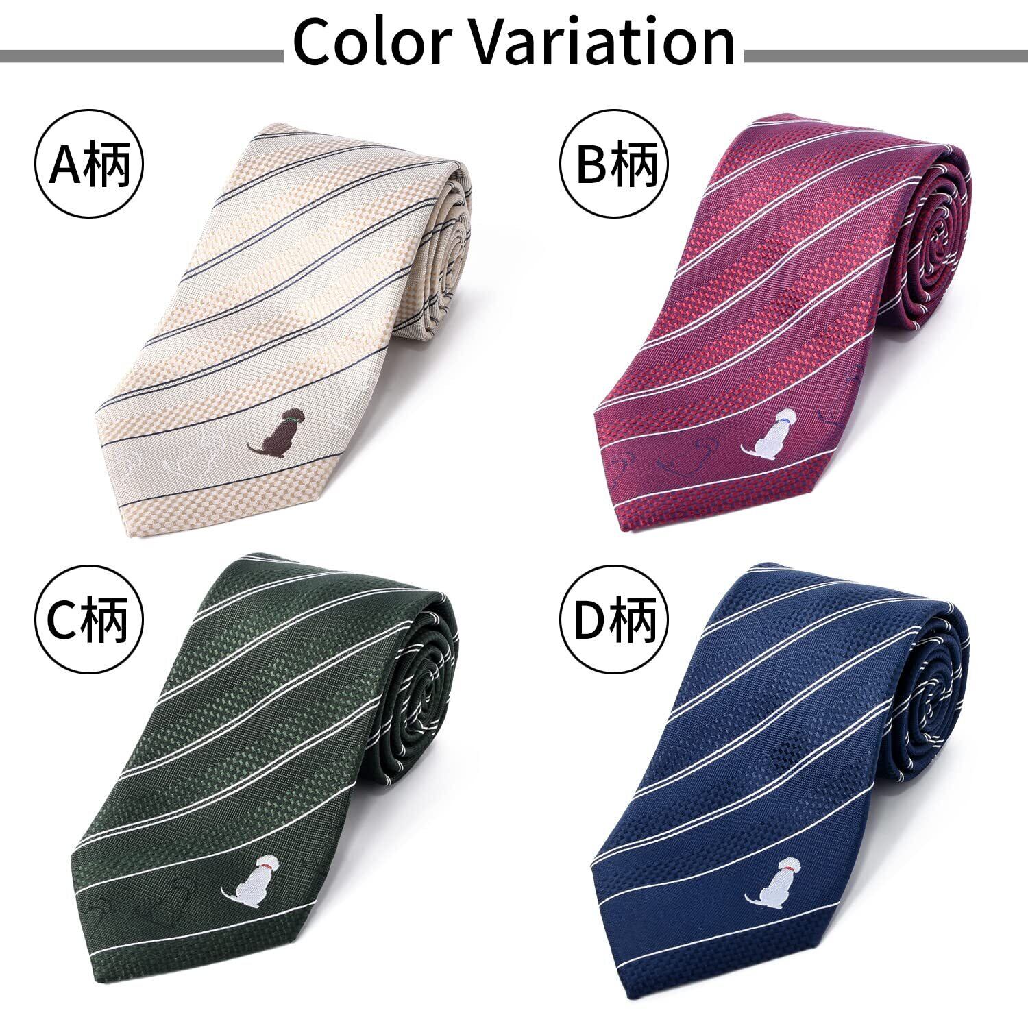 [Rachel] アニマル柄 ネクタイ 犬柄 シルク100% ジャガード織 犬猫 ワンちゃん ストライプ レジメン ワンポイント 撥水効果 クリアBOX付