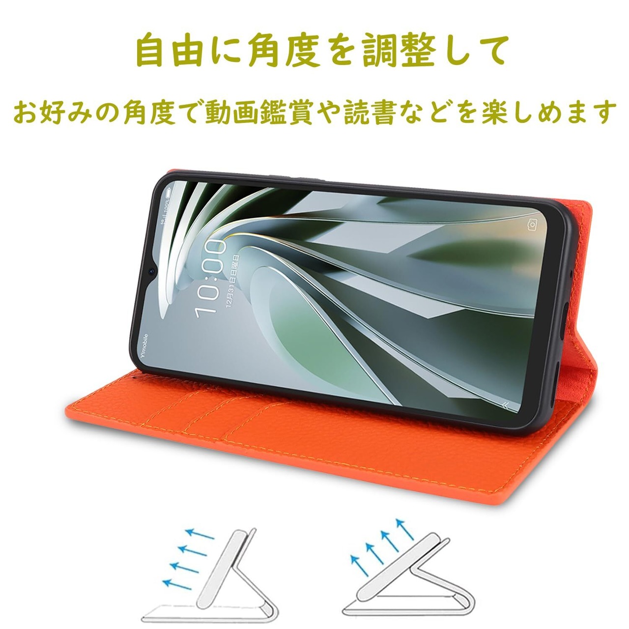 Havaya ZTE Libero 5G IV ケース A302ZT ケース 手帳型 本革 ストラップ docomo libero5g4 スマホケース au 耐衝撃 リベロ5g 4世代 カバー SoftBank カード収納 スタンド機能 レザー -オレンジ
