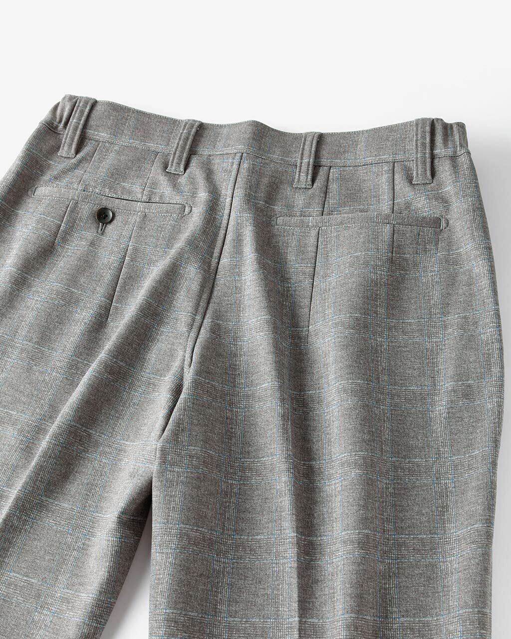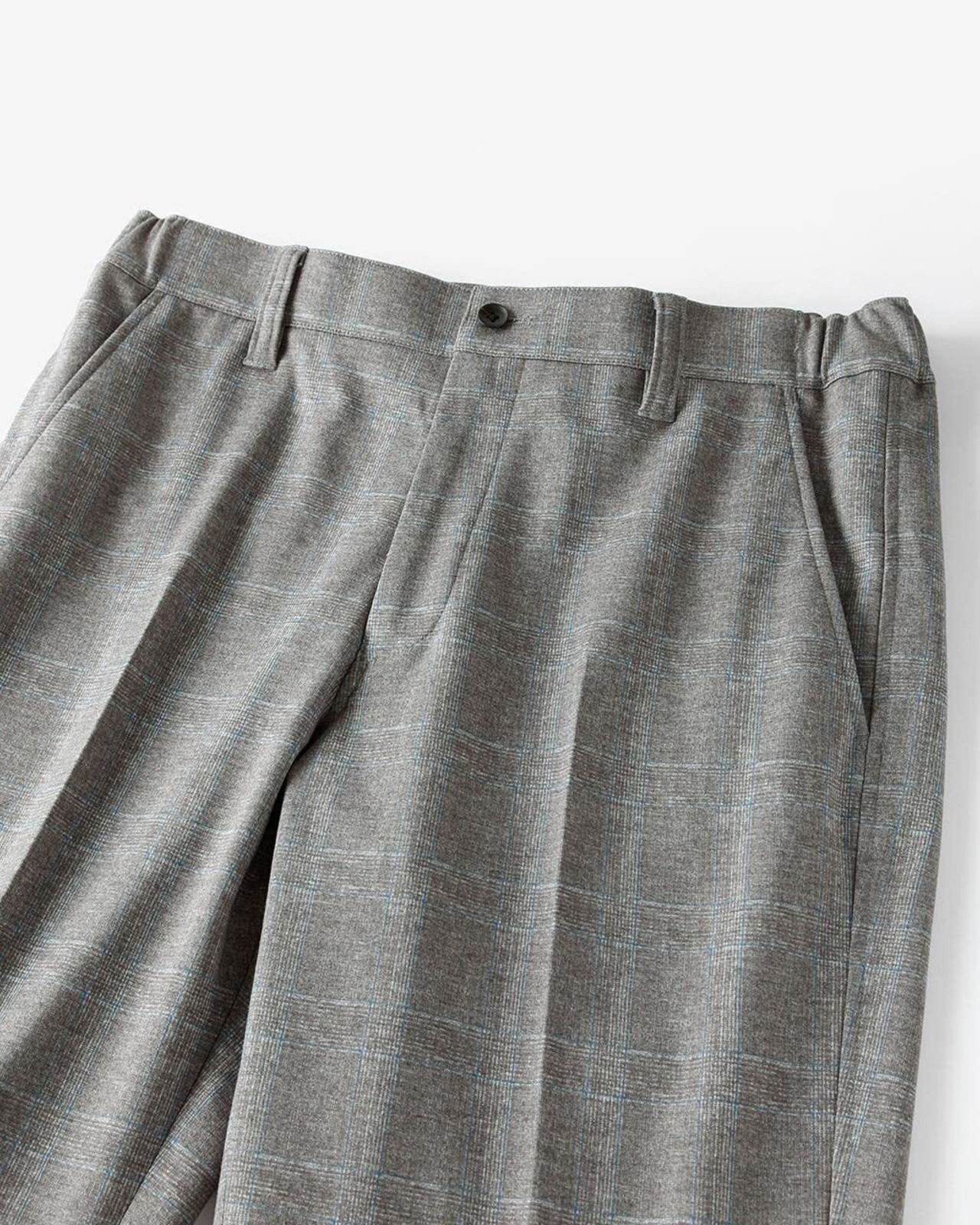 一見ウールのパンツのようで、じつはスポーツウェアに使われるジャージー素材のゴルフパンツ。名門ゴルフ場でも通用するクラシックなチェック柄をデジタルプリントで施しました。スイングを左右する下半身の動きも縦横に伸縮するジャージーパンツゆえ、膝の曲げ伸ばしも楽々。ストレッチ芯を採用したウェストがサイドゴムでフィットするので、腰の回転にしっかり追随してくれます。