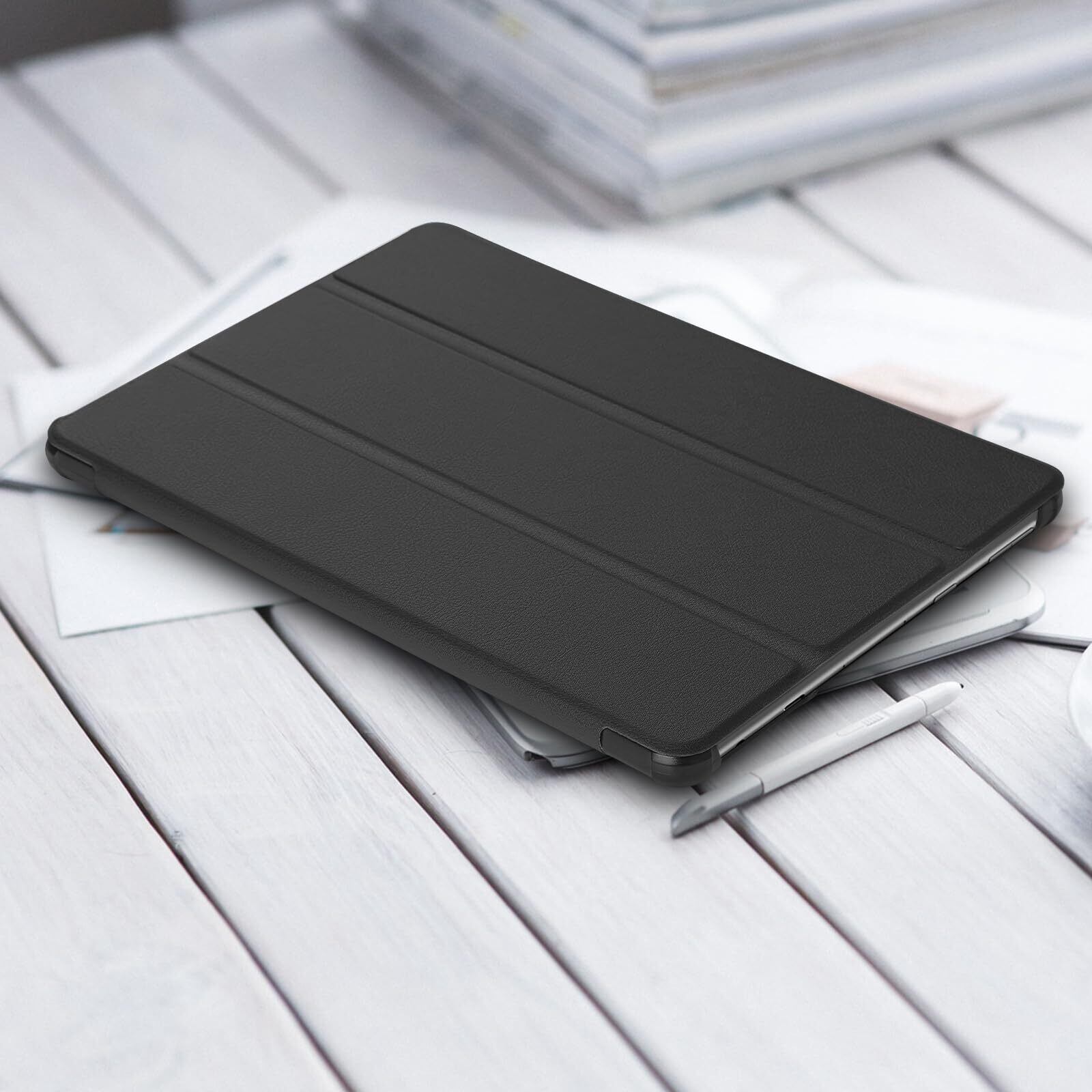 WD&CD Fire HD 10 2023 10.1" 対応 タブレットケース Fire HD 10 2023 対応 タブレットカバー 薄型 耐衝撃 オートスリープ機能 肌感レザー 三つ折りスマート マグネット式 保護カバー(ブラック)
