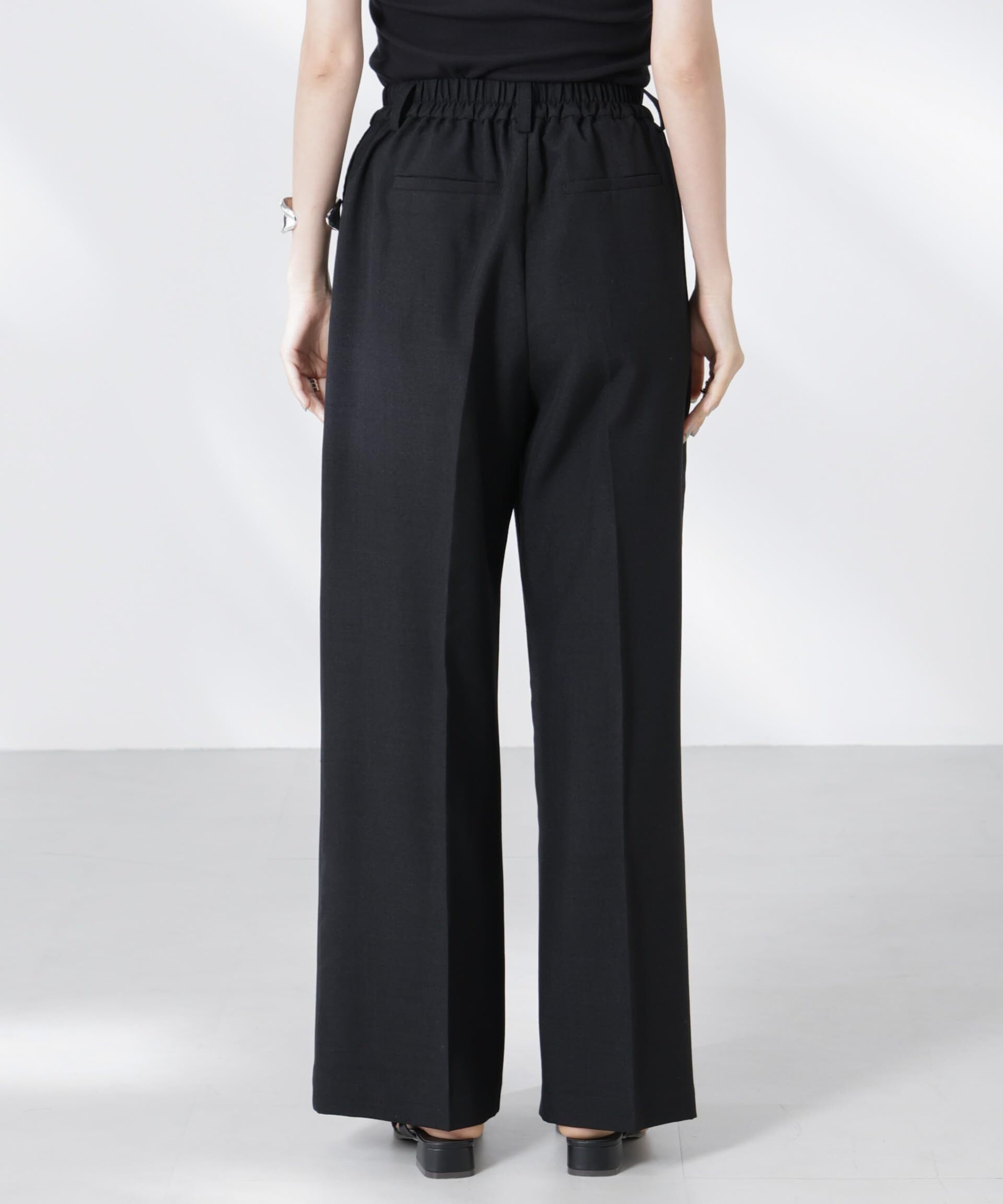 タックを取り入れたデザインにより、ウエスト周りはすっきりと見せつつ、全体的にゆったりとしたシルエットを実現。センタープレスが縦のラインを強調し、さらなる美脚効果をもたらします。