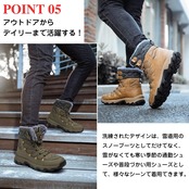 裏起毛素材を使用しており、足元をしっかりと温めます。保暖性が高く、寒い日でも快適に過ごせる一足です。冬のアウトドアアクティビティにも最適で、あらゆるシーンに対応します。
