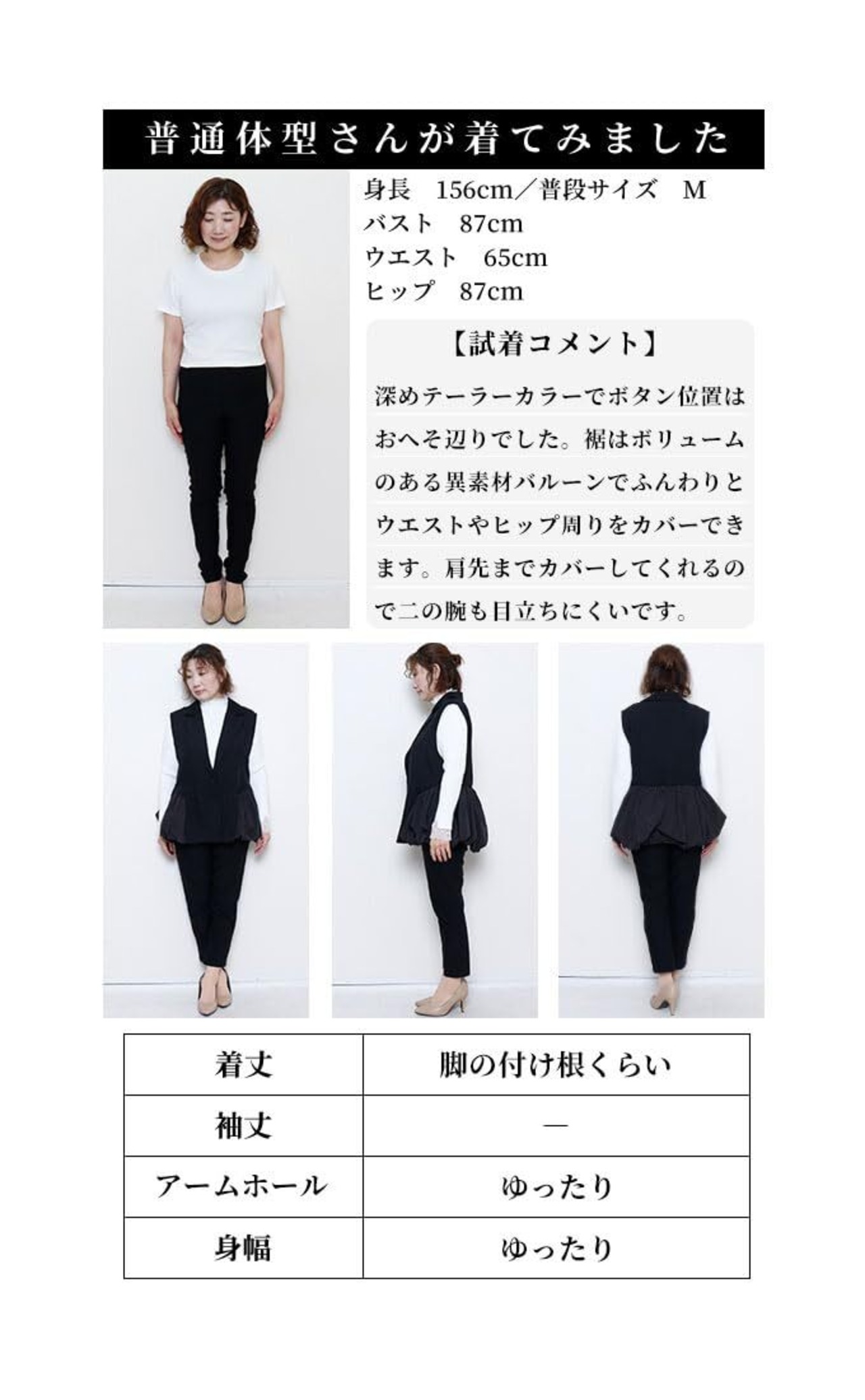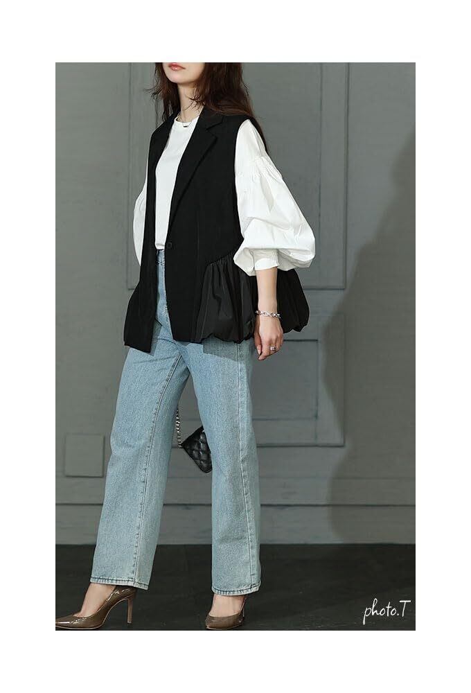 【2022最新】[sawa á la mode] 甘辛 な 大人 スタイル 異素材 ジレ ジャケット レディース ファッション アウター ジャケット ベスト ジレ 異素材 バルーン 菱襟 ノースリーブ 無地 | nico3588