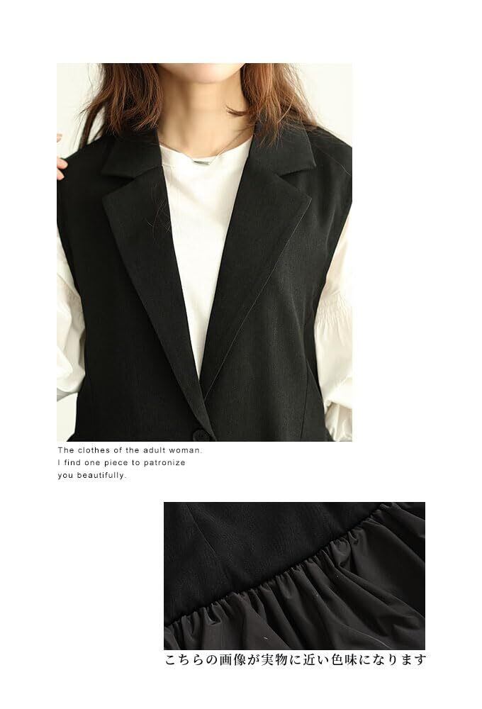 【2022最新】[sawa á la mode] 甘辛 な 大人 スタイル 異素材 ジレ ジャケット レディース ファッション アウター ジャケット ベスト ジレ 異素材 バルーン 菱襟 ノースリーブ 無地