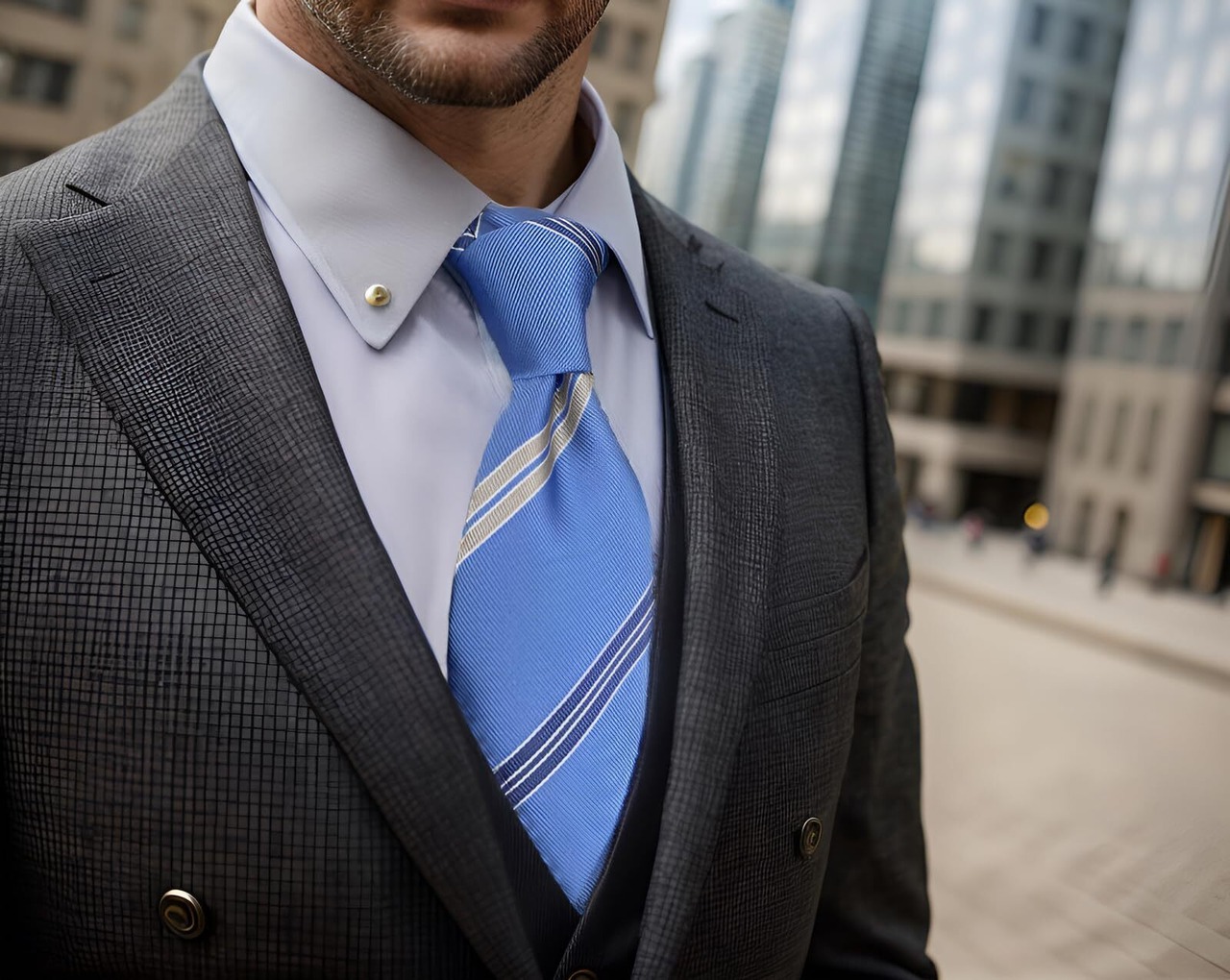 ストライプネクタイは、現代のビジネスマンにとって必須のアクセサリーとなっています。無地やチェックのシャツにもよく合い、細いピンストライプのシャツにも合わせることができます。ネクタイの太いストライプが、ピンストライプシャツの細いストライプと対照的な印象を与えます。