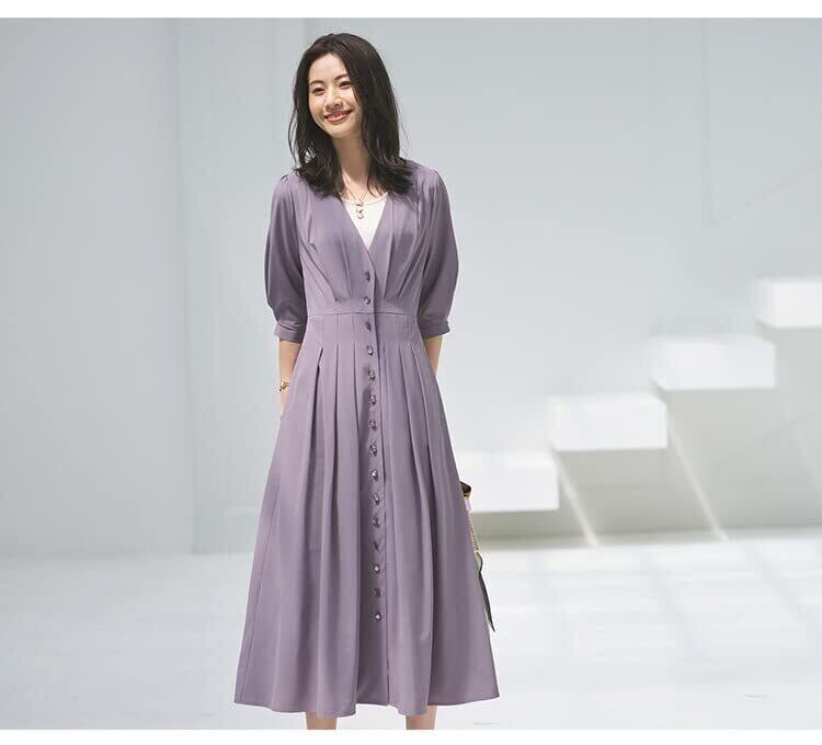 「この『【人気商品】ルイ ルエ ブティック 2way フロントボタン タック ワンピース』は、シンプルでありながらエレガントなスタイルを実現する、大人の女性にぴったりなアイテムです!カジュアルからオフィススタイルまで幅広いシーンで活躍します。」