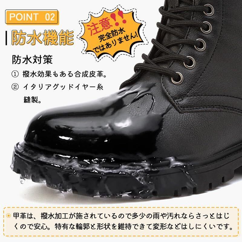 【質感ある素材を厳選】靴の表面は心地良いとても細かい皮革を採用して、柔軟な肌触り心地に優れ、足に優しくフィットします。上質なレザーの靭性も優れているため、ワークブーツ ブーツの特有な輪郭と形状を維持できて変形などはしにくいです。
