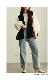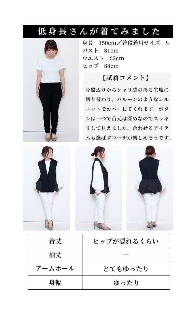 【2022最新】[sawa á la mode] 甘辛 な 大人 スタイル 異素材 ジレ ジャケット レディース ファッション アウター ジャケット ベスト ジレ 異素材 バルーン 菱襟 ノースリーブ 無地 | nico3588