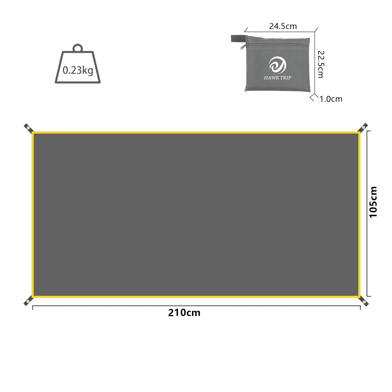 テントシート グランドシート 防水シート 軽量 収納バッグ付き アウトドア キャンプ 登山 ピクニックハイキング (グレー, 105x210cm)