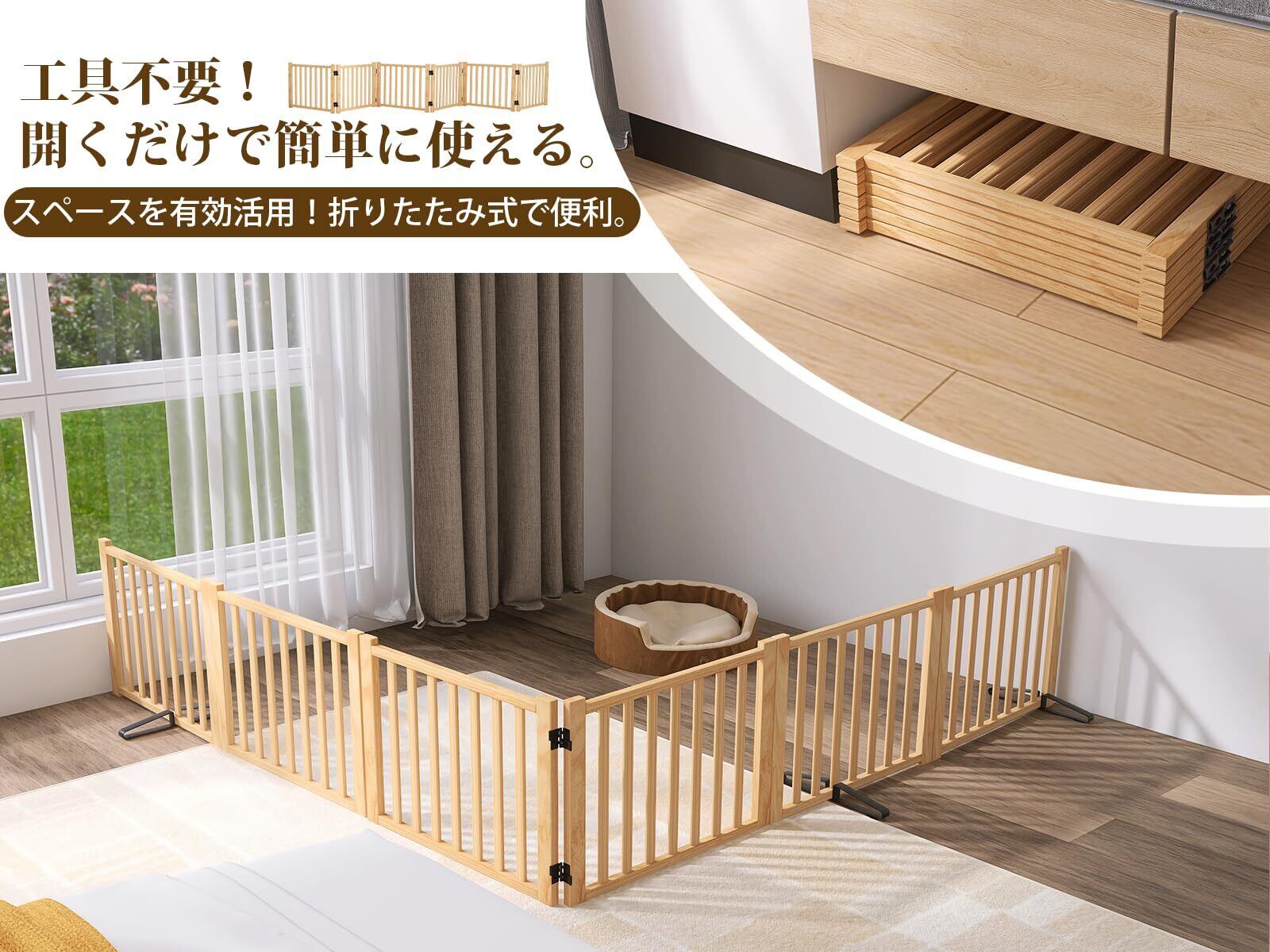 ペットゲート 木製犬ゲート YOCAN ペットフェンス 高さ43cm 長さ352cm 置くだけゲート折りたたみ 倒れない いぬ 柵 室内 犬脱走防止 飛び出し防止 小型犬 中型犬用 天然木 6枚パネル