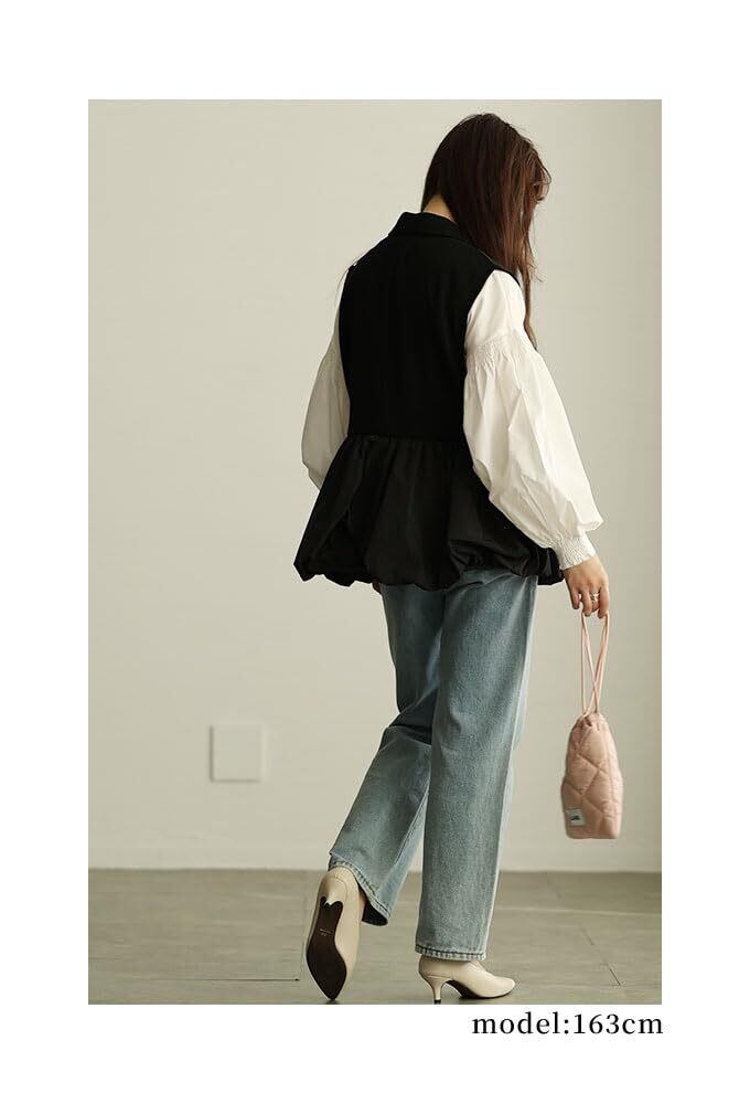 【2022最新】[sawa á la mode] 甘辛 な 大人 スタイル 異素材 ジレ ジャケット レディース ファッション アウター ジャケット ベスト ジレ 異素材 バルーン 菱襟 ノースリーブ 無地