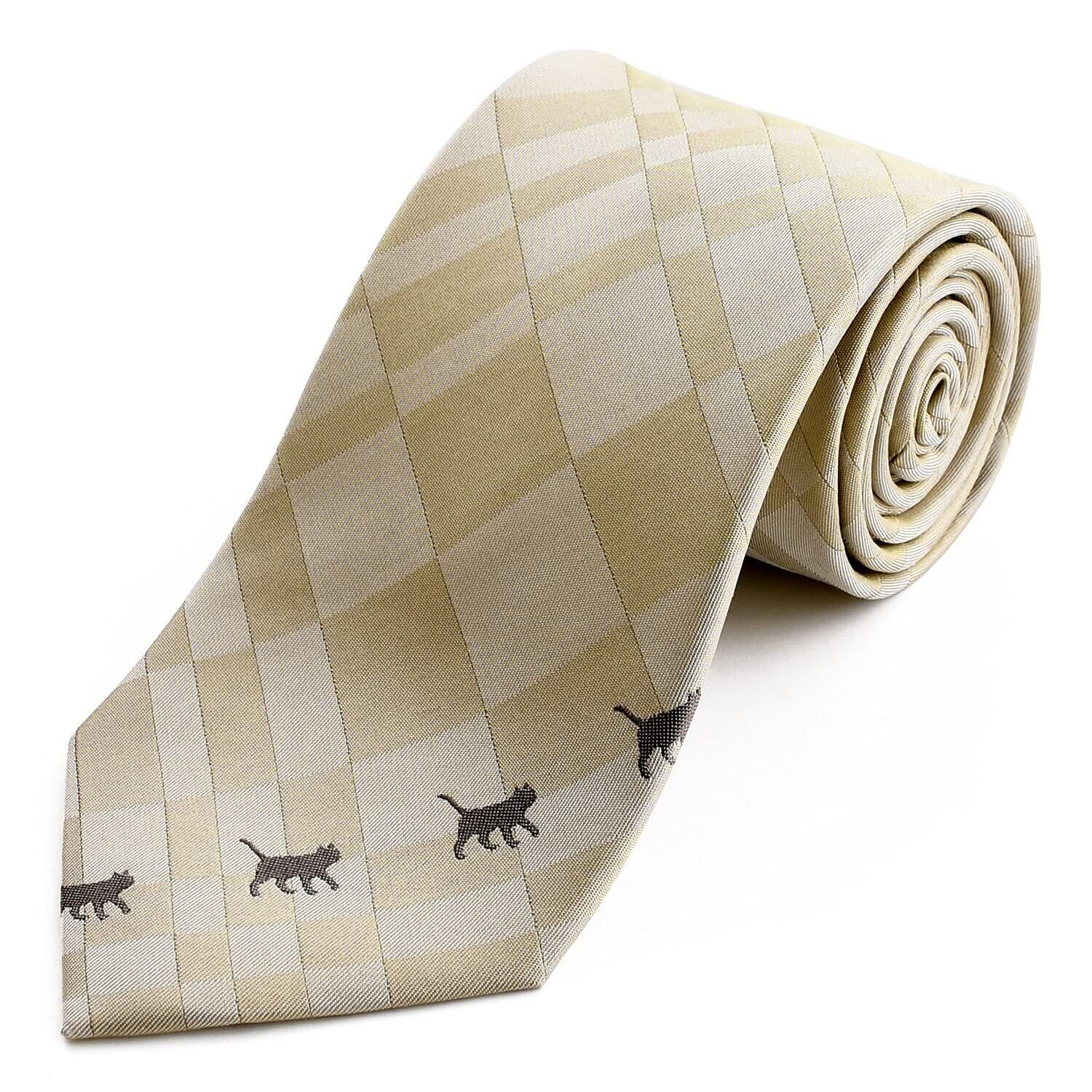 【人気商品】[Rachel] アニマル ネクタイ ネコ柄 犬猫 チェック柄 シルク100% ジャガード織 撥水効果 ワンポイント 4色 クリアBOX付