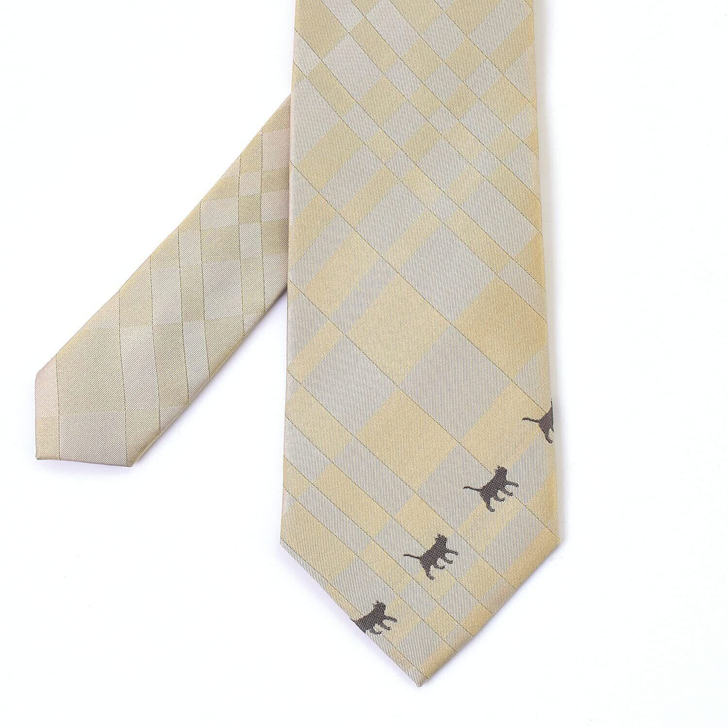 [Rachel] アニマル ネクタイ ネコ柄 犬猫 チェック柄 シルク100% ジャガード織 撥水効果 ワンポイント 4色 クリアBOX付
