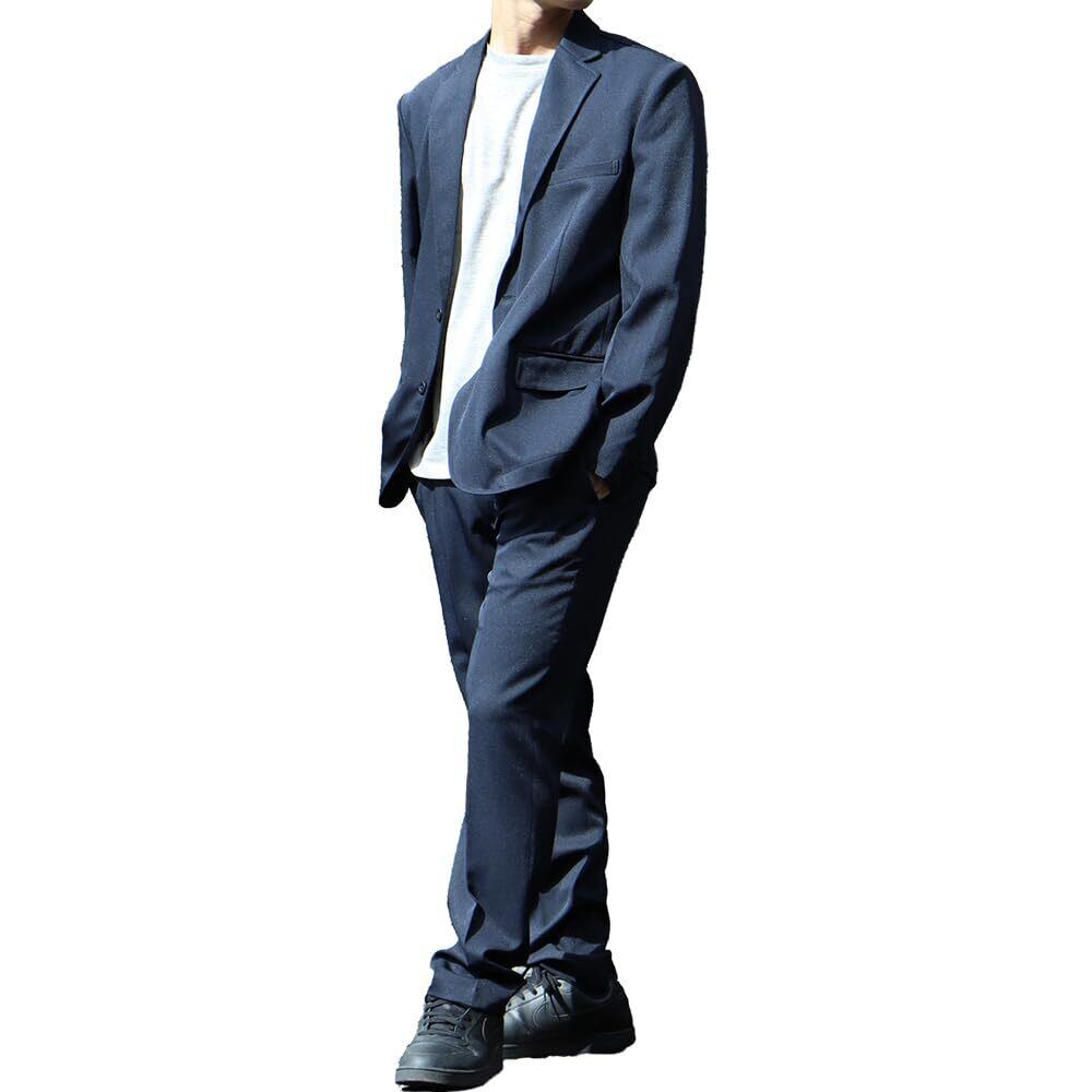 [アトリエサンロクゴ] カジュアルスーツ 着心地良好 伸縮性 ストレッチ セットアップ 2点セット 上下セット ジャケット スラックス 無地 2つボタン 就職スーツ パーティー カジュアル セットアップスーツ メンズ