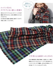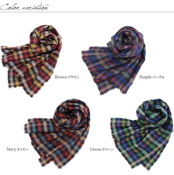 【ストール】生産地:日本製 サイズ:約55cm×180cm 素材:コットン100% カラー:ブラウン、パープル、ネイビー、グリーン お届け内容:ストール単品(1枚)