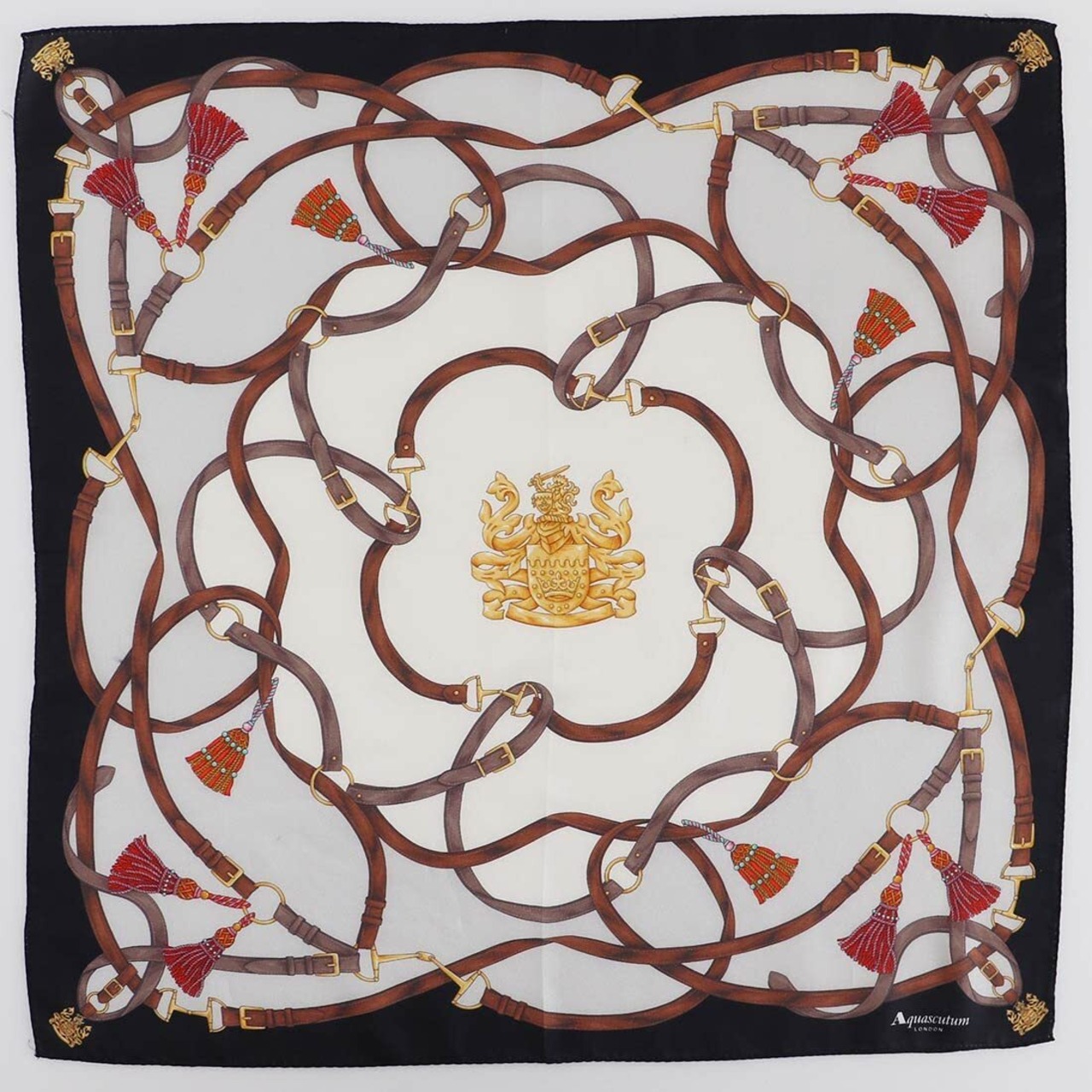 【2022最新】[アクアスキュータム] 大判 プリントハンカチ 0001 (ブラック) 【シルク&コットン】 婦人 レディース ハンカチ 約58cm