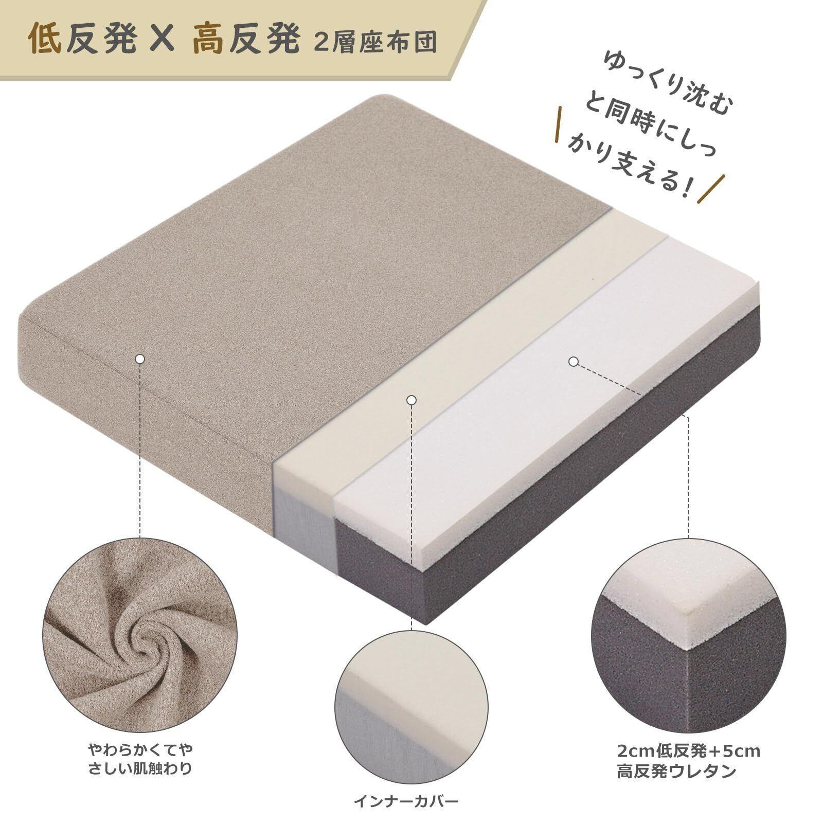 Baibu Home 座布団 クッション 低反発+高反発 クッション 椅子 厚め 7cm フロア 2層構造 42cm 四角