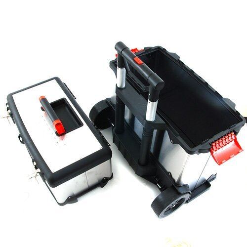 幅570mm、奥行350mm、高さ590mmのコンパクトなサイズで、作業スペースを効率的に活用できます。2段構造が大きな収納力を提供し、ツールや機器をきちんと整理して使用するための効果的なシステムを実現します。
