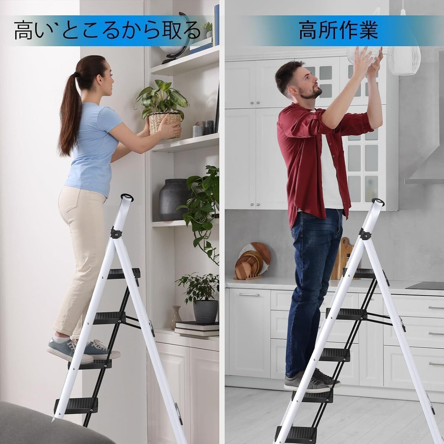 【軽量&耐荷重】:脚立は軽量なのにもかかわらず、最大230KGまで耐えることができます。頑丈な作りで使い勝手も抜群です。女性は簡単に持ち運びたり折ったりすることもできます。