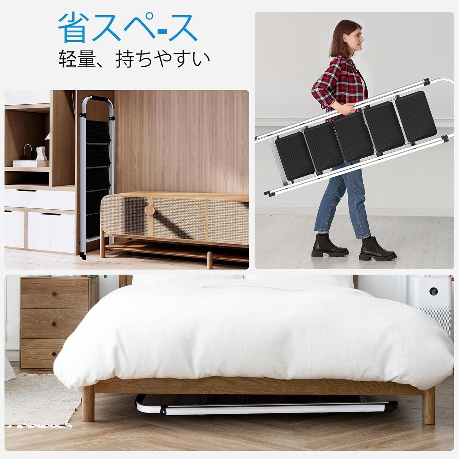 【幅広い用途】:室内の脚立としてだけでなく、洗車、倉庫、屋外の装飾にも使用できます。折りたたんだ完成品をお届けします。