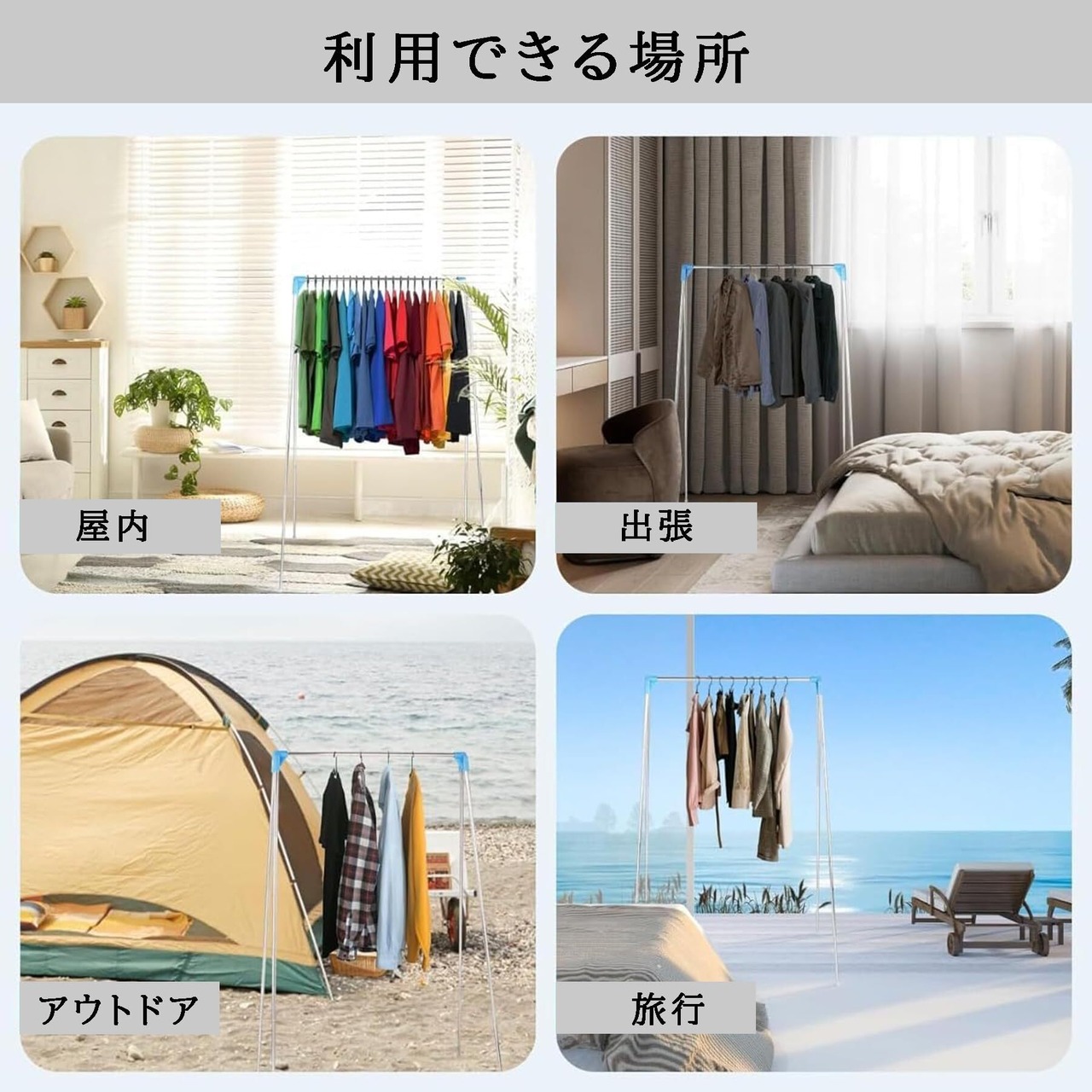 【多くの場所に適用可能】屋内と屋外の両方での使用に適しています。寝室やベランダなどの屋内でも使用でき、使用しないときは移動して折りたたんで収納できます。梅雨の時期の衣類乾燥に最適です。同時に、アウトドア、出張のホテル、キャンプなどにも使えます。小型で持ち運びが簡単です。