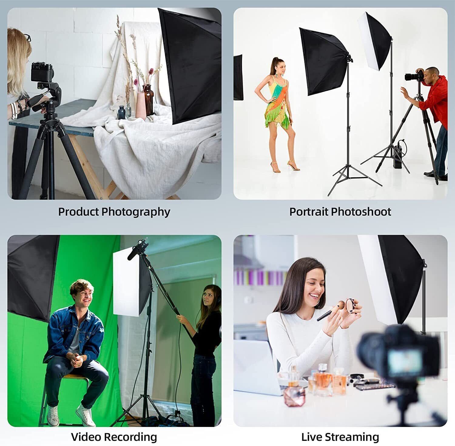 【2024年改良版高品質ソフトボックス*2】ソフトボックスは、専門性の高い反射材によりマルチレイヤ加工処理されています。内面の石模様反射材で、優れた耐熱性と散光性があり、被写体をしっかり引き立たせて撮影できます。ソフトボックスキットは、50 x 70 cmの大きな表面、光を均一に拡散する上、撮影効果を向上させる照明を提供します。更に、写真撮影ソフトボックスは影を取り除いて柔らかい光を反射し、より良い撮影効果を実現できます。素人でも簡単にのような写真の撮影ができます