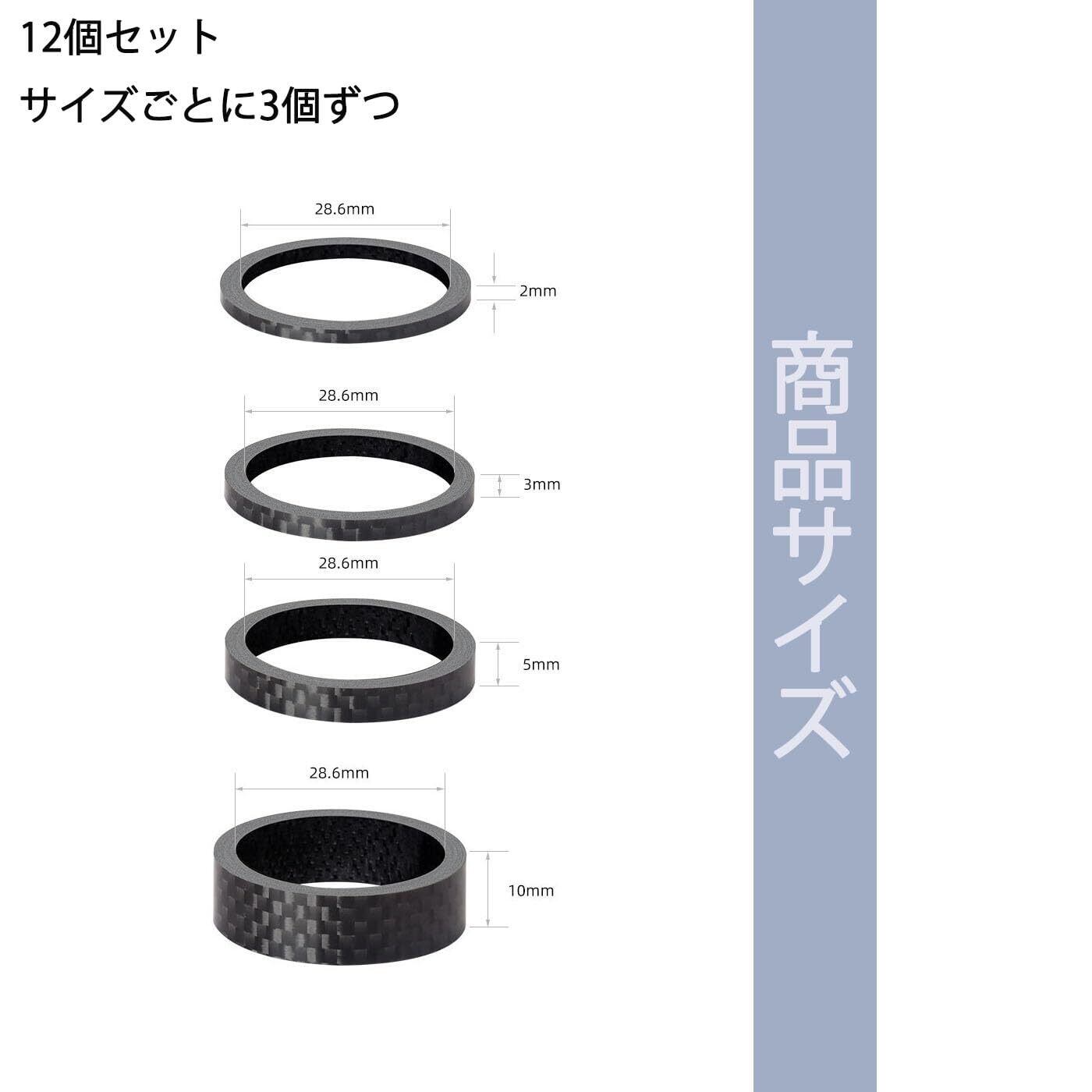 Mirhua コラムスペーサー 内径28.6mm ロースペーサー バイクスペーサー ステムスペーサー 自転車2mm/3mm/5mm/10mm 12個セット