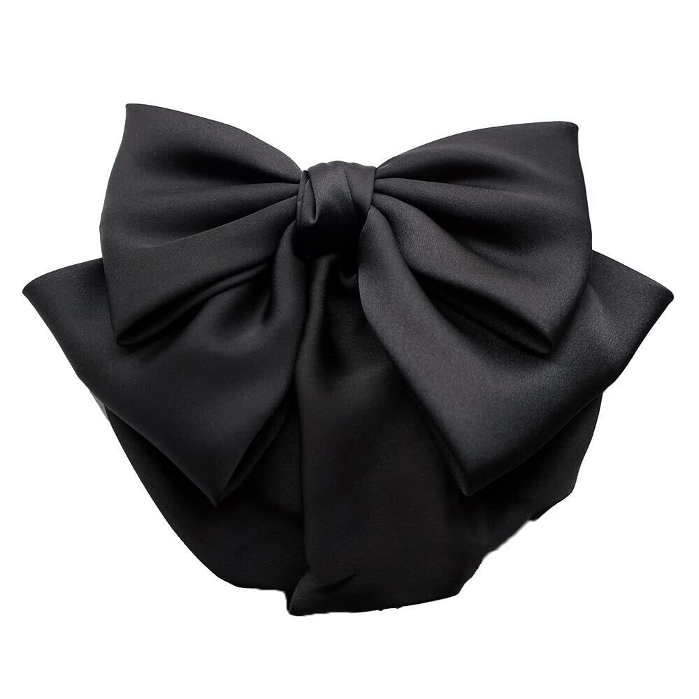 GLOBAL BOX リボン バレッタ ネット付き まとめ髪 黒