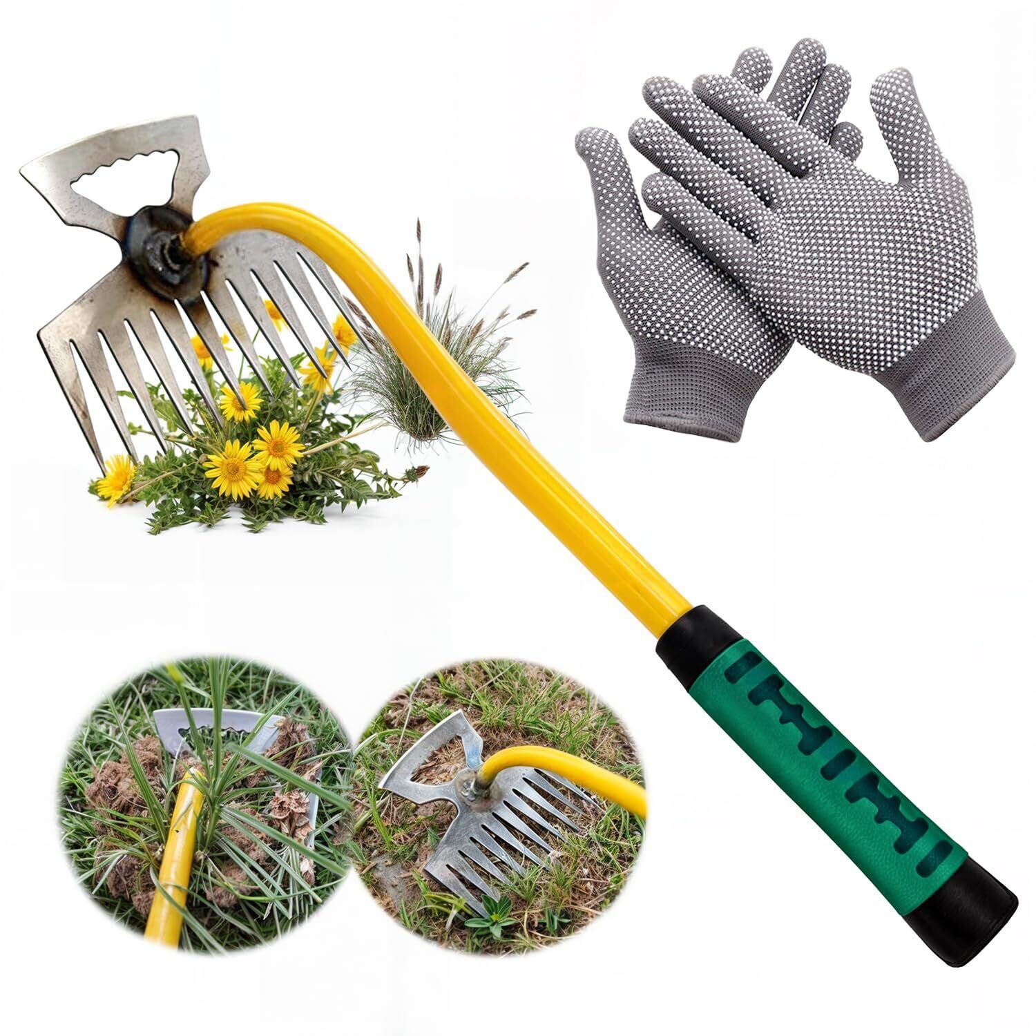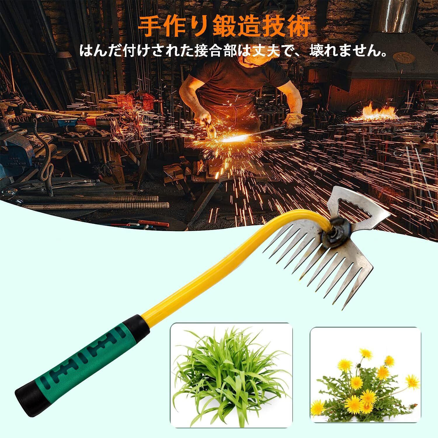 優れた機能性:この手動除草ツールは実用的で軽量の園芸ツールであり、土を緩めることができ、簡単に雑草を取り除くのに役立ちます。耙(は)を備えており、屋外の庭や芝生の雑草を簡単に除去でき、労力を節約します。作業手袋1組付き。