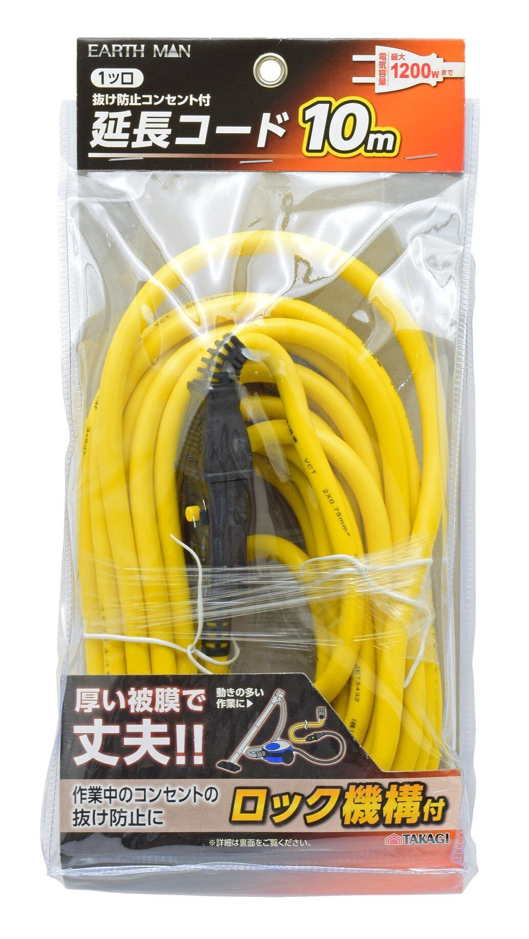 高儀 EARTH MAN 1ツ口抜け防止コンセント付延長コード 10m