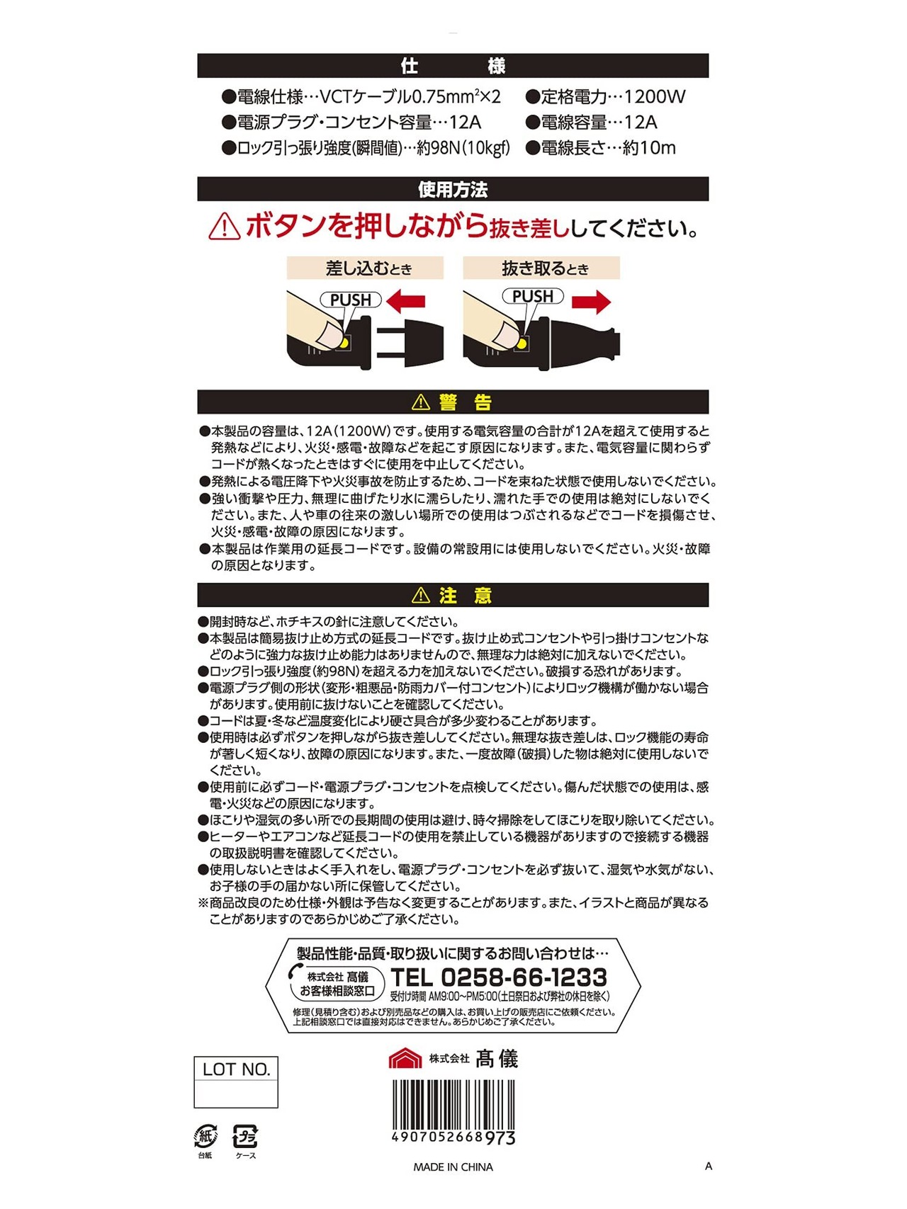 電線容量:12A