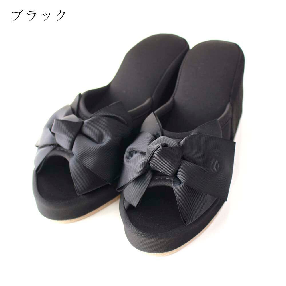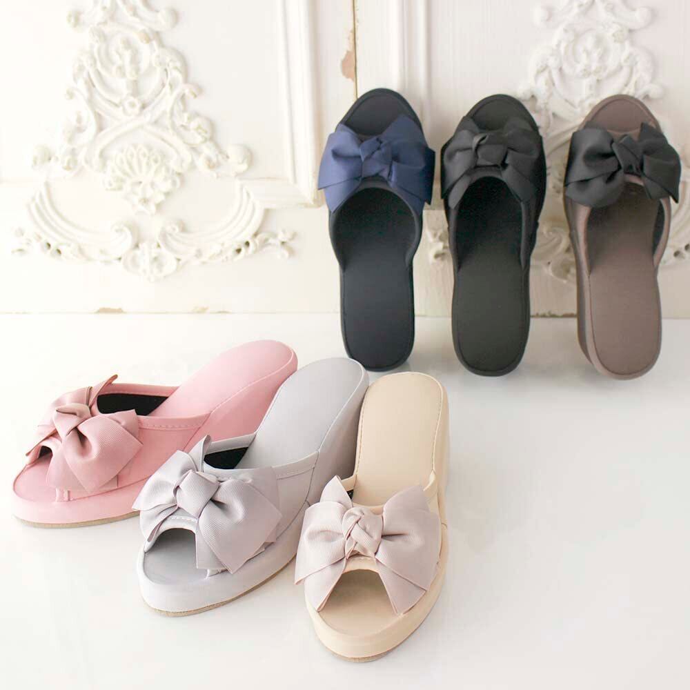 大きな3重のグログランの大きなリボンが特徴の厚底ルームシューズ